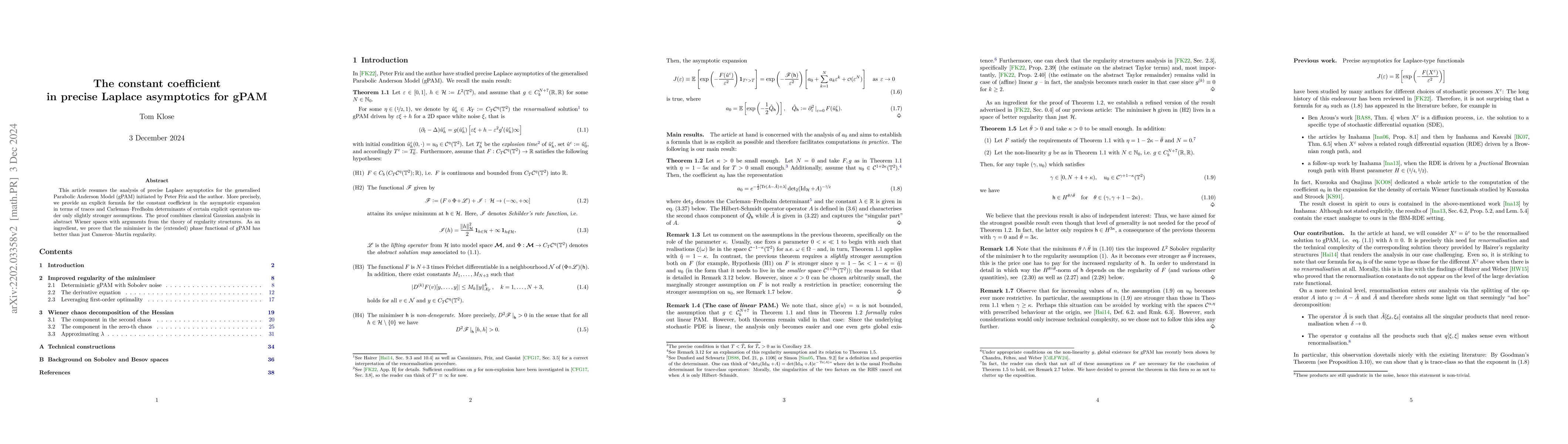This article resumes the analysis of precise Laplace asymptotics for the generalised Parabolic Anderson Model (gPAM) initiated by Peter Friz and the author. More precisely, we provide an explicit formula for the constant coefficient in the asymptotic expansion in terms of traces and Carleman-Fredholm determinants of certain explicit operators. The proof combines classical Gaussian analysis in abstract Wiener spaces with arguments from the theory of regularity structures. As an ingredient, we prove that the minimiser in the (extended) phase functional of gPAM has better than just Cameron-Martin regularity.