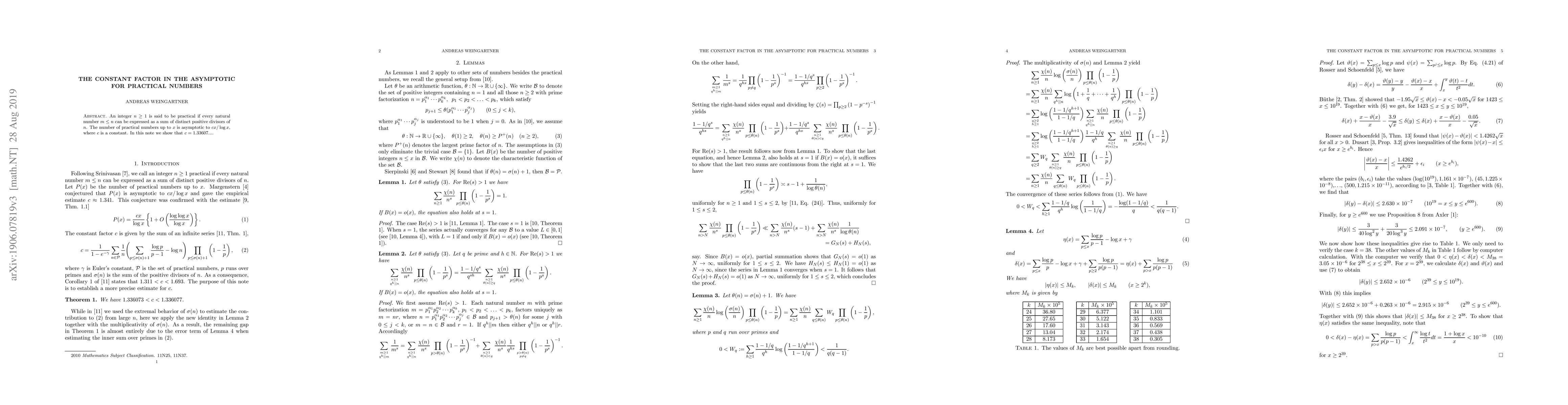 An integer $n\ge 1$ is said to be practical if every natural number $ m \le n$ can be expressed as a sum of distinct positive divisors of $n$. The number of practical numbers up to $x$ is asymptotic to $c x/\log x$, where $c$ is a constant. In this note we show that $c=1.33607...$.