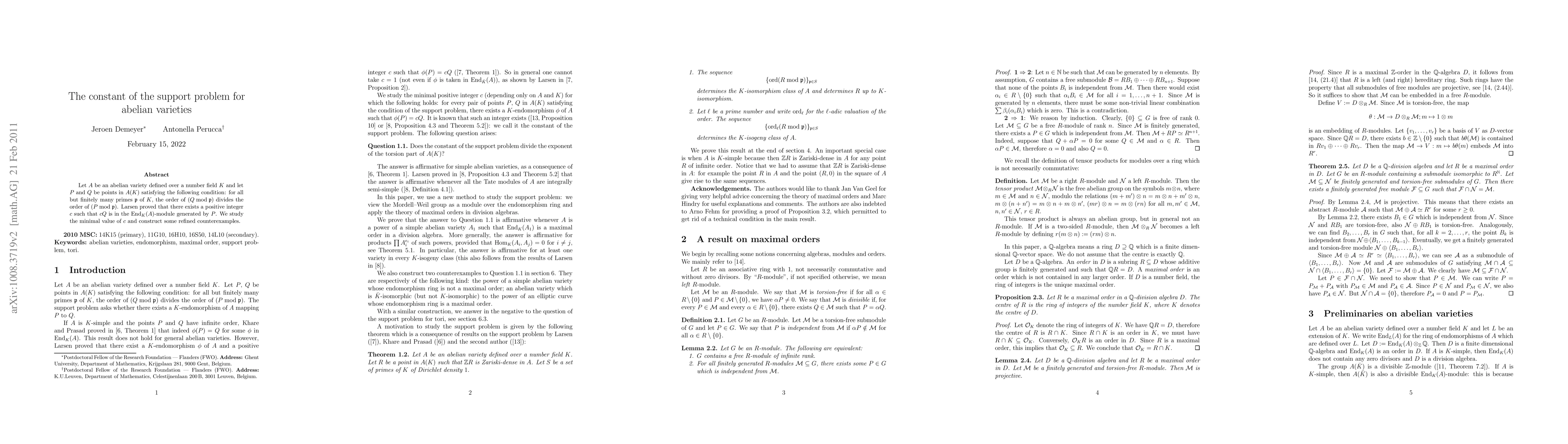 Let A be an abelian variety defined over a number field K and let P and Q be points in A(K) satisfying the following condition: for all but finitely many primes p of K, the order of (Q mod p) divides the order of (P mod p). Larsen proved that there exists a positive integer c such that cQ is in the End_K(A)-module generated by P. We study the minimal value of c and construct some refined counterexamples.