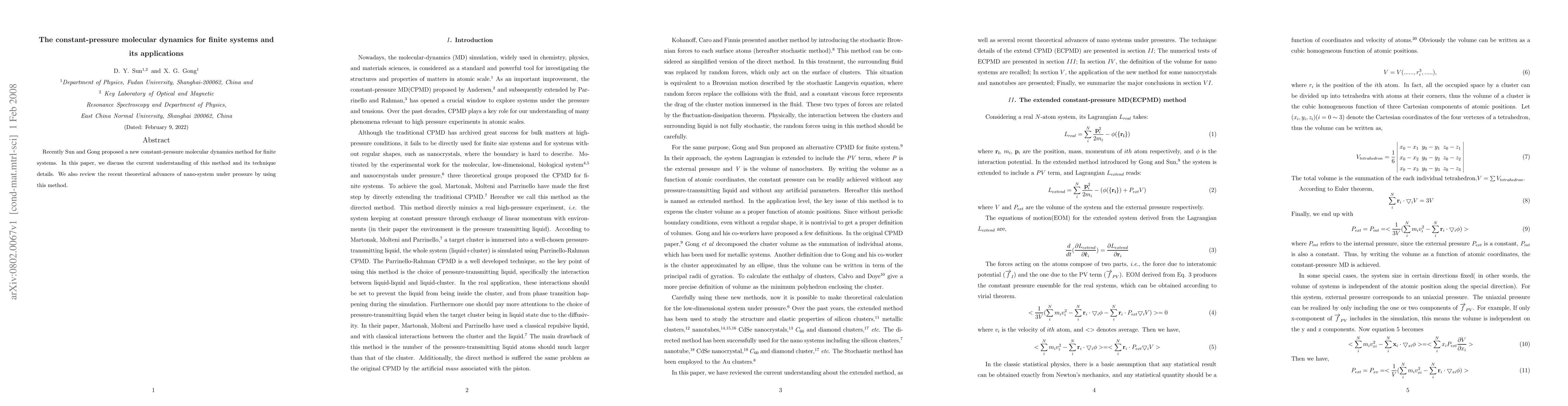 Summary: This paper introduces a novel constant-pressure molecular dynamics method for finite systems, detailing its technique and reviewing recent theoretical advancements in understanding nano-systems under pressure using this method.