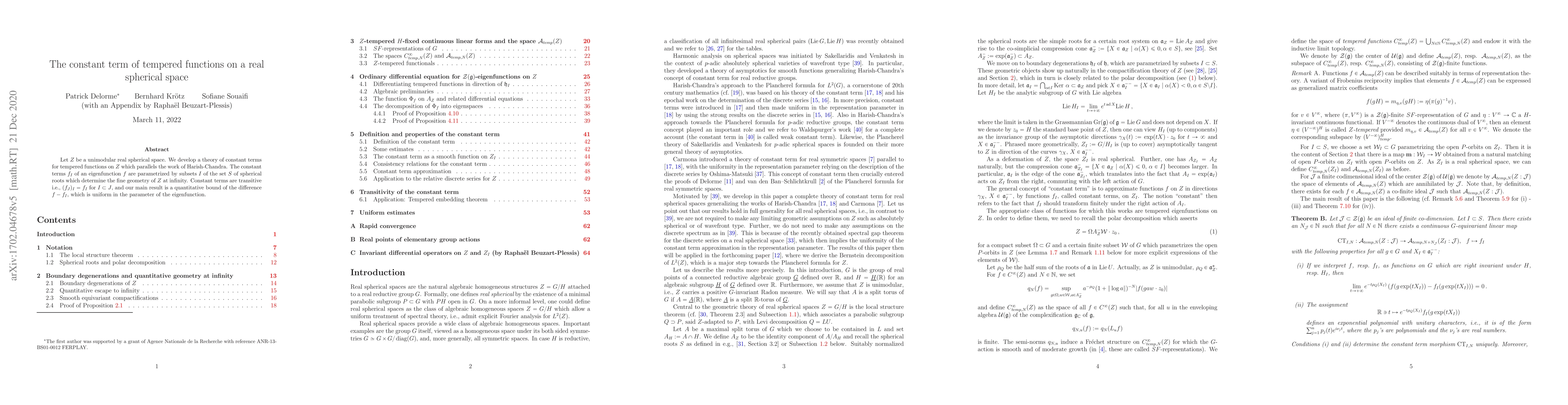 Let $Z$ be a unimodular real spherical space. We develop a theory of constant terms for tempered functions on $Z$ which parallels the work of Harish-Chandra. The constant terms $f_I$ of an eigenfunction $f$ are parametrized by subsets $I$ of the set $S$ of spherical roots which determine the fine geometry of $Z$ at infinity. Constant terms are transitive i.e. $(f_J)_I=f_I$ for $I\subset J$, and our main result is a quantitative bound of the difference $f-f_I$, which is uniform in the parameter of the eigenfunction.
