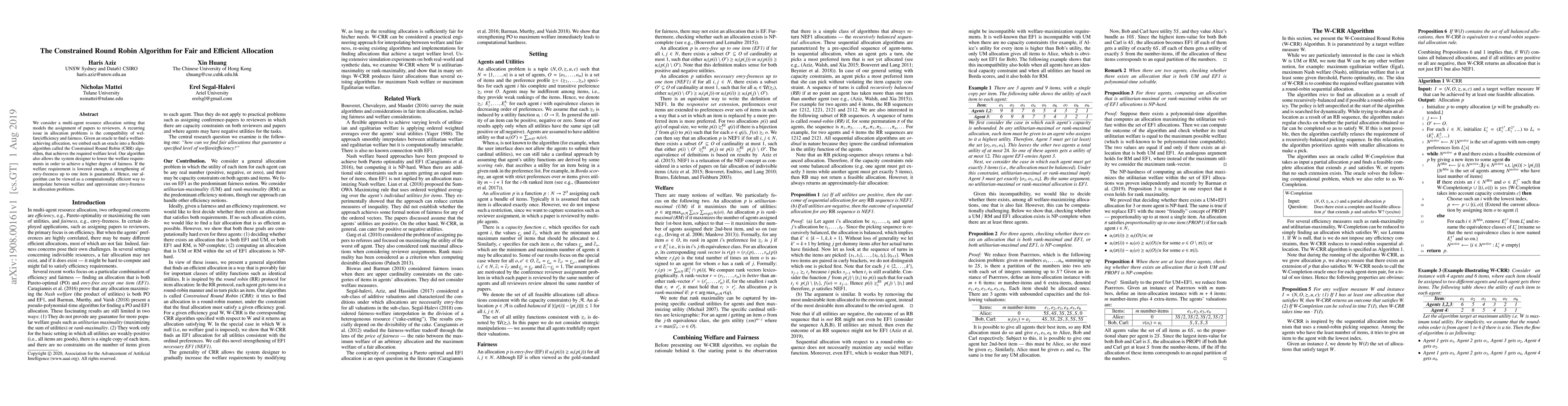 We consider a multi-agent resource allocation setting that models the assignment of papers to reviewers. A recurring issue in allocation problems is the compatibility of welfare/efficiency and fairness. Given an oracle to find a welfare-achieving allocation, we embed such an oracle into a flexible algorithm called the Constrained Round Robin (CRR) algorithm, that achieves the required welfare level. Our algorithm also allows the system designer to lower the welfare requirements in order to achieve a higher degree of fairness. If the welfare requirement is lowered enough, a strengthening of envy-freeness up to one item is guaranteed. Hence, our algorithm can be viewed as a computationally efficient way to interpolate between welfare and approximate envy-freeness in allocation problems.