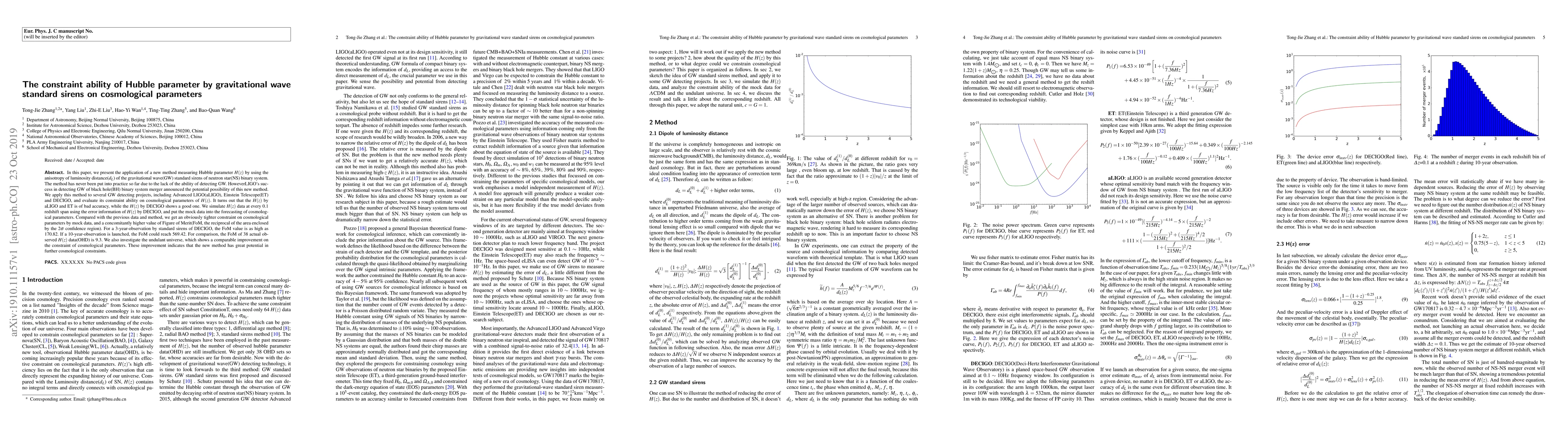 In this paper, we present the application of a new method measuring Hubble parameter $H(z)$ by using the anisotropy of luminosity distance($d_{L}$) of the gravitational wave(GW) standard sirens of neutron star(NS) binary system. The method has never been put into practice so far due to the lack of the ability of detecting GW. However, LIGO's success in detecting GW of black hole(BH) binary system merger announced the potential possibility of this new method. We apply this method to several GW detecting projects, including Advanced LIGO(aLIGO), Einstein Telescope(ET) and DECIGO, and evaluate its constraint ability on cosmological parameters of $H(z)$. It turns out that the $H(z)$ by aLIGO and ET is of bad accuracy, while the $H(z)$ by DECIGO shows a good one. We simulate $H(z)$ data at every 0.1 redshift span using the error information of $H(z)$ by DECIGO, and put the mock data into the forecasting of cosmological parameters. Compared with the previous data and method, we get an obviously tighter constraint on cosmological parameters by mock data, and a concomitantly higher value of Figure of Merit(FoM, the reciprocal of the area enclosed by the $2\sigma$ confidence region). For a 3-year-observation by standard sirens of DECIGO, the FoM value is as high as 170.82. If a 10-year-observation is launched, the FoM could reach 569.42. For comparison, the FoM of 38 actual observed $H(z)$ data(OHD) is 9.3. We also investigate the undulant universe, which shows a comparable improvement on the constraint of cosmological parameters. These improvement indicates that the new method has great potential in further cosmological constraints.
