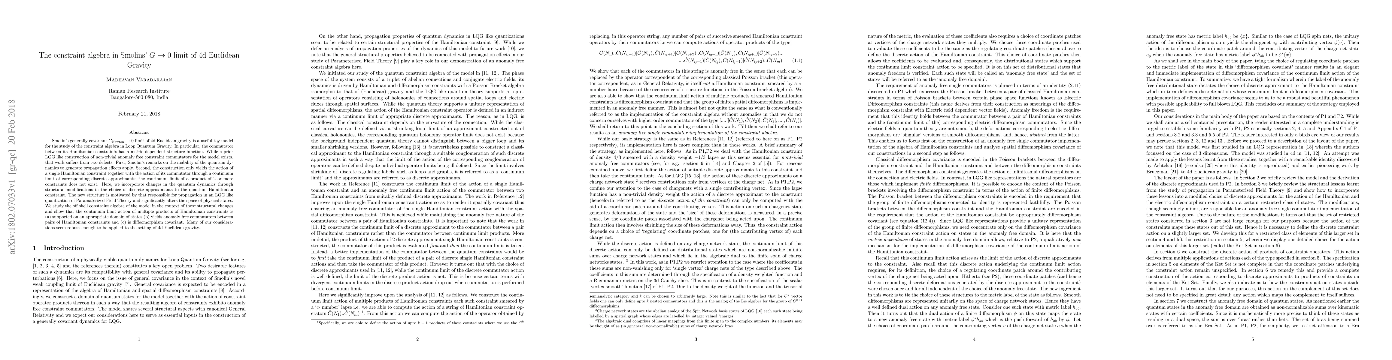 This paper examines Smolin's limit of 4d Euclidean gravity where Newton's constant approaches zero, focusing on the constraint algebra in Loop Quantum Gravity. It proposes structural modifications to the discrete approximants of the quantum Hamiltonian constraint to address the limitations of prior constructions, resulting in a continuum limit that supports the action of multiple products of Hamiltonian constraints, yields anomaly-free commutators, and is diffeomorphism covariant.