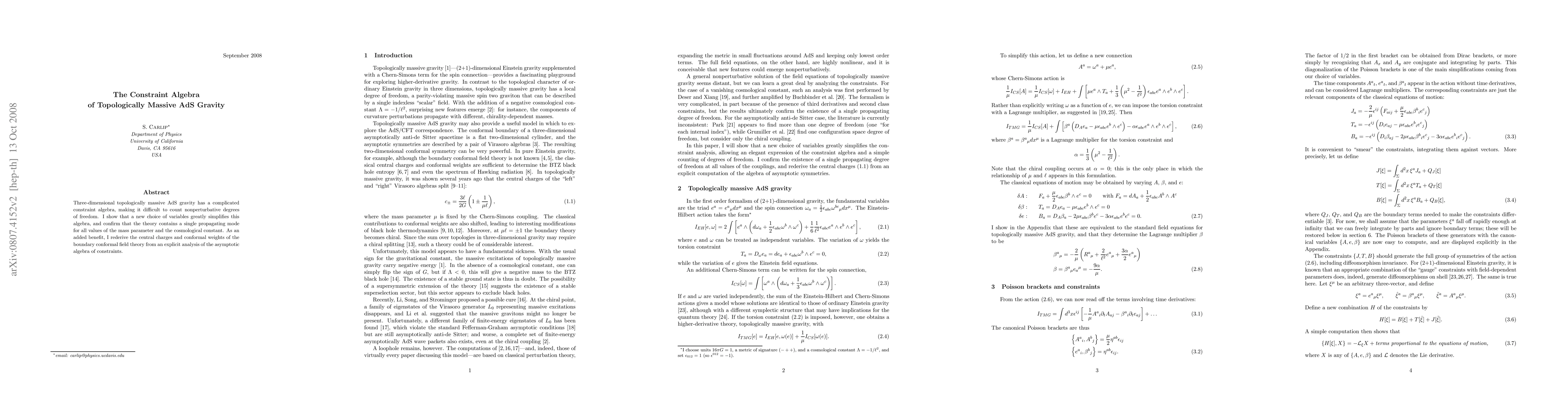 This paper simplifies the constraint algebra of three-dimensional topologically massive AdS gravity by introducing a new set of variables, revealing a single propagating mode for all mass parameters and cosmological constants. Additionally, it rederives the central charges and conformal weights of the boundary conformal field theory through the analysis of the asymptotic algebra.