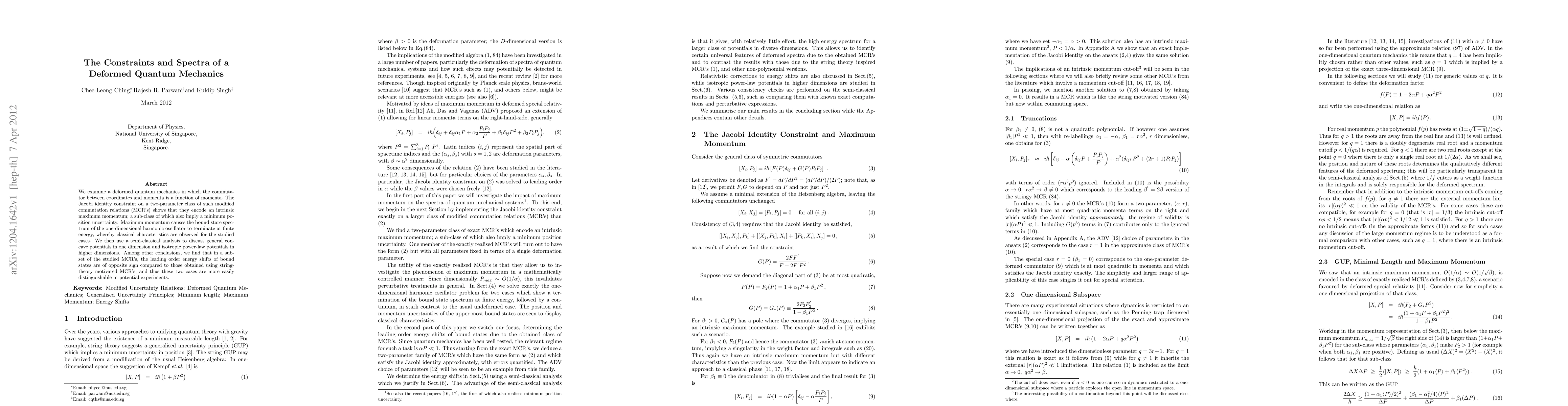 We examine a deformed quantum mechanics in which the commutator between coordinates and momenta is a function of momenta. The Jacobi identity constraint on a two-parameter class of such modified commutation relations (MCR's) shows that they encode an intrinsic maximum momentum; a sub-class of which also imply a minimum position uncertainty. Maximum momentum causes the bound state spectrum of the one-dimensional harmonic oscillator to terminate at finite energy, whereby classical characteristics are observed for the studied cases. We then use a semi-classical analysis to discuss general concave potentials in one dimension and isotropic power-law potentials in higher dimensions. Among other conclusions, we find that in a subset of the studied MCR's, the leading order energy shifts of bound states are of opposite sign compared to those obtained using string-theory motivated MCR's, and thus these two cases are more easily distinguishable in potential experiments.