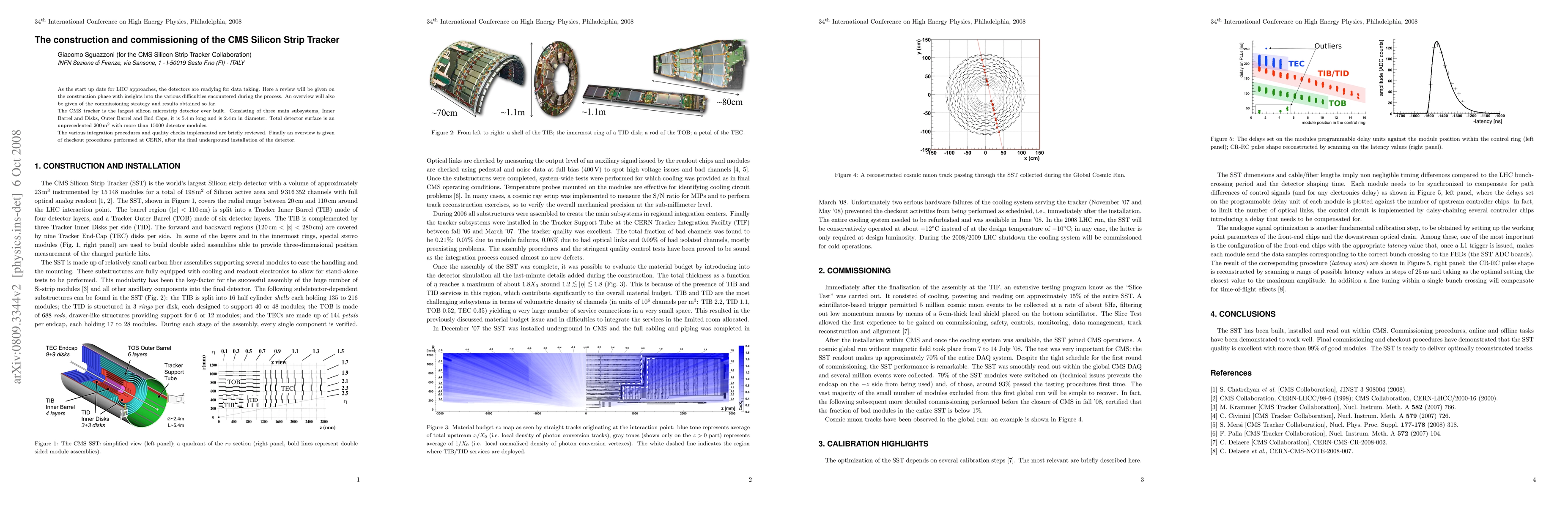 This paper reviews the construction and commissioning of the CMS Silicon Strip Tracker, the largest silicon microstrip detector ever built, consisting of three main subsystems. It highlights the challenges faced during assembly and the comprehensive commissioning strategy and results achieved.