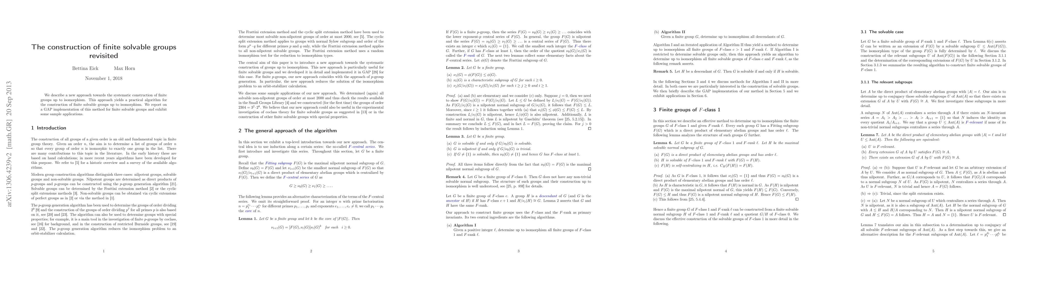 This paper presents a novel algorithmic approach for constructing finite solvable groups systematically, leading to a practical GAP implementation. The method demonstrates effectiveness through sample applications showcasing its utility in group theory.