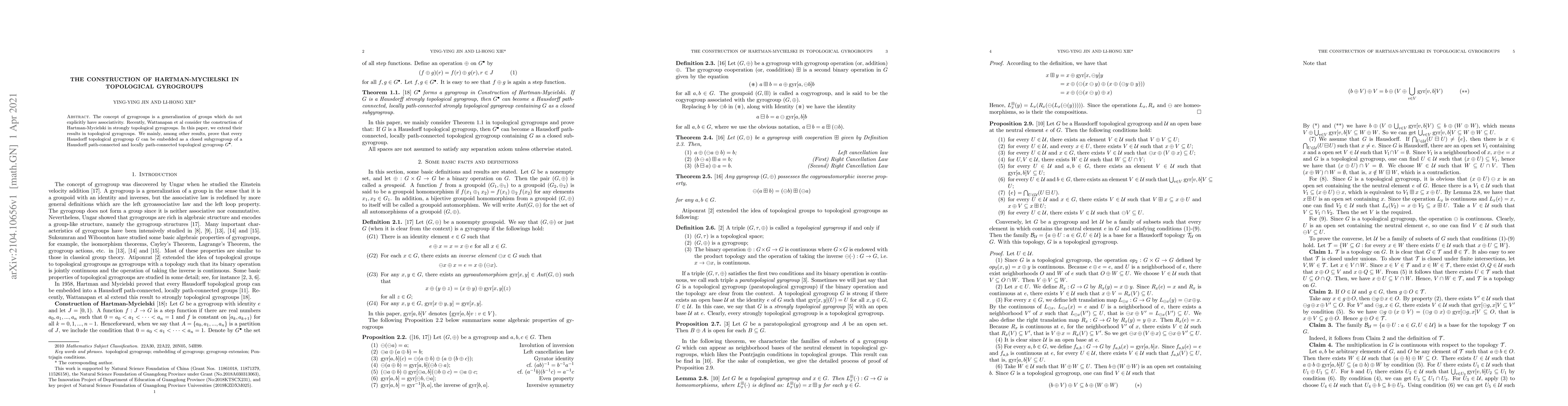 This paper extends the construction of Hartman-Mycielski in topological gyrogroups, proving that any Hausdorff topological gyrogroup $G$ can be embedded as a closed subgyrogroup within a larger Hausdorff, path-connected, and locally path-connected topological gyrogroup $G^\bullet$.