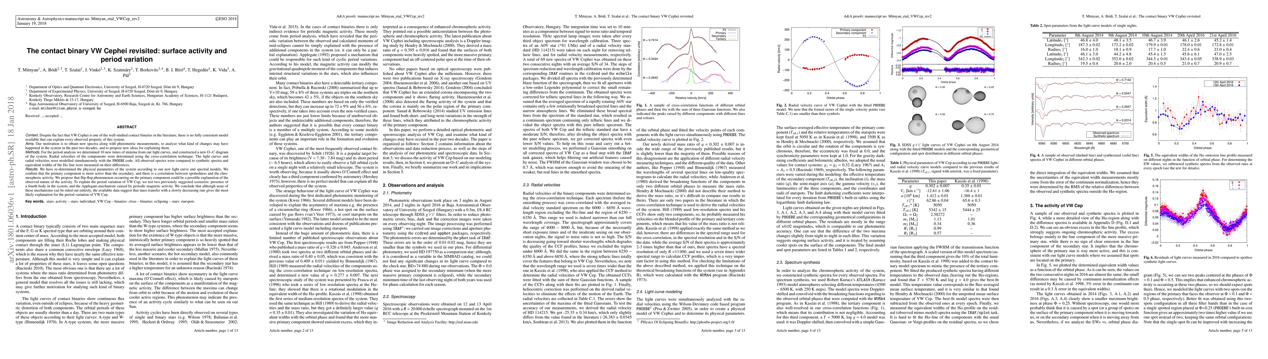 A study revisits the contact binary VW Cephei, analyzing new spectra and photometric measurements to understand its surface activity and period variation, concluding that mass transfer with a decreasing rate is the most likely explanation for its observed nature.