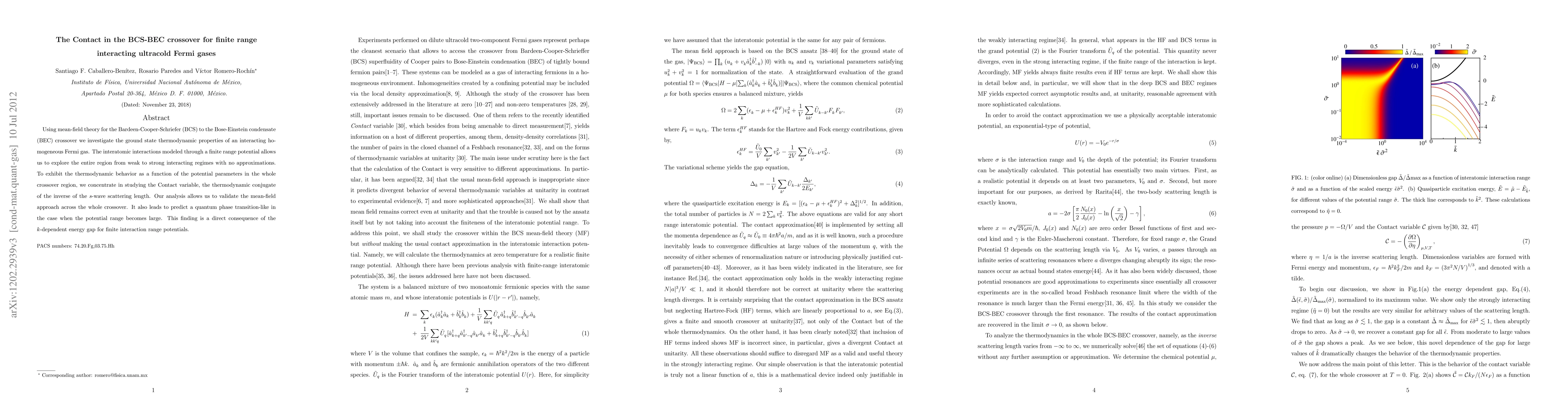 Using mean-field theory for the Bardeen-Cooper-Schriefer (BCS) to the Bose-Einstein condensate (BEC) crossover we investigate the ground state thermodynamic properties of an interacting homogeneous Fermi gas. The interatomic interactions modeled through a finite range potential allows us to explore the entire region from weak to strong interacting regimes with no approximations. To exhibit the thermodynamic behavior as a function of the potential parameters in the whole crossover region, we concentrate in studying the contact variable, the thermodynamic conjugate of the inverse of the s-wave scattering length. Our analysis allows us to validate the mean-field approach across the whole crossover. It also leads to predict a quantum transition-like in the case when the potential range becomes large. This finding is a direct consequence of the k-dependent energy gap for finite interaction range potentials.