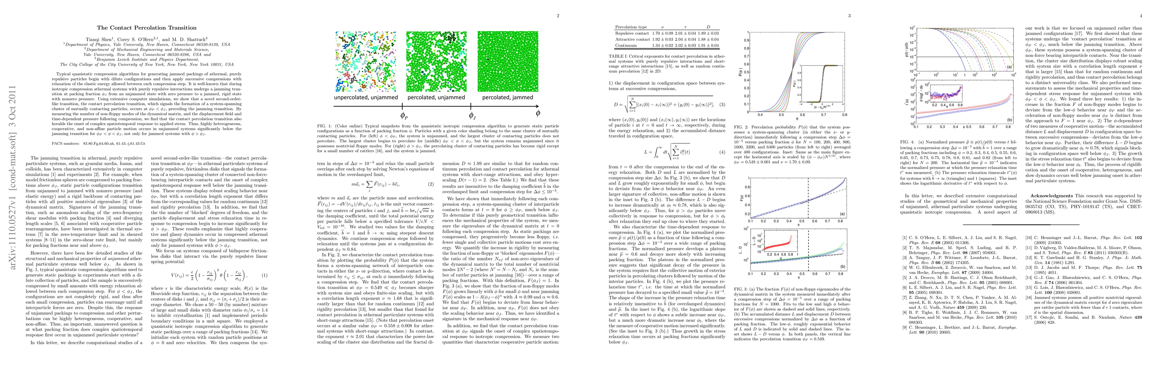 The research presents a novel understanding of the contact percolation transition in jammed particulate systems, which provides new insights into the system's geometrical and mechanical properties.