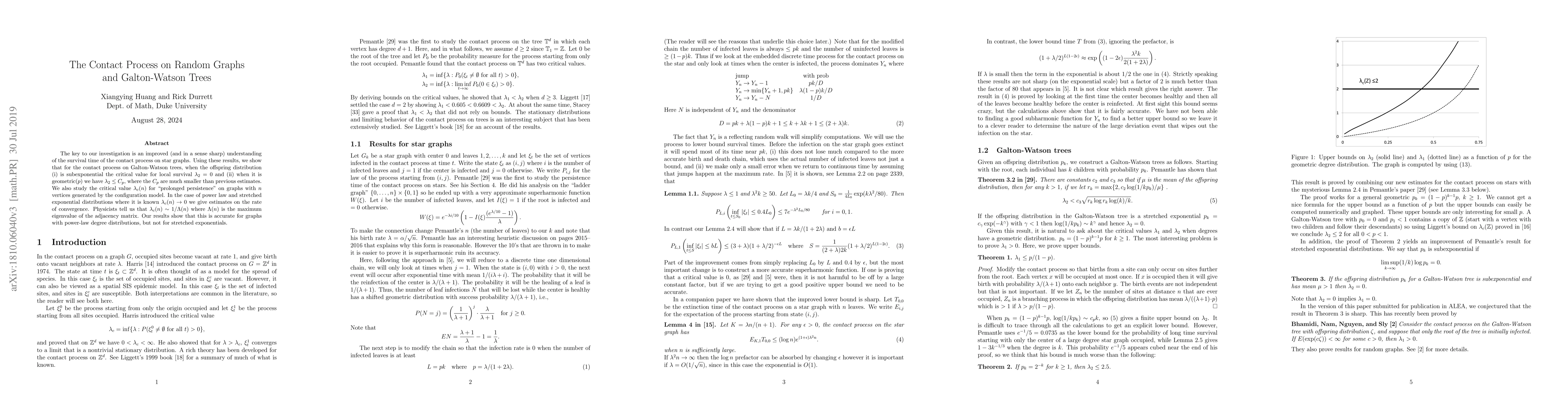 Researchers improved understanding of the contact process on random graphs and Galton-Watson trees, finding that for subexponential offspring distributions, the critical value for local survival is 0, and for geometric distributions, it is much smaller than previous estimates.