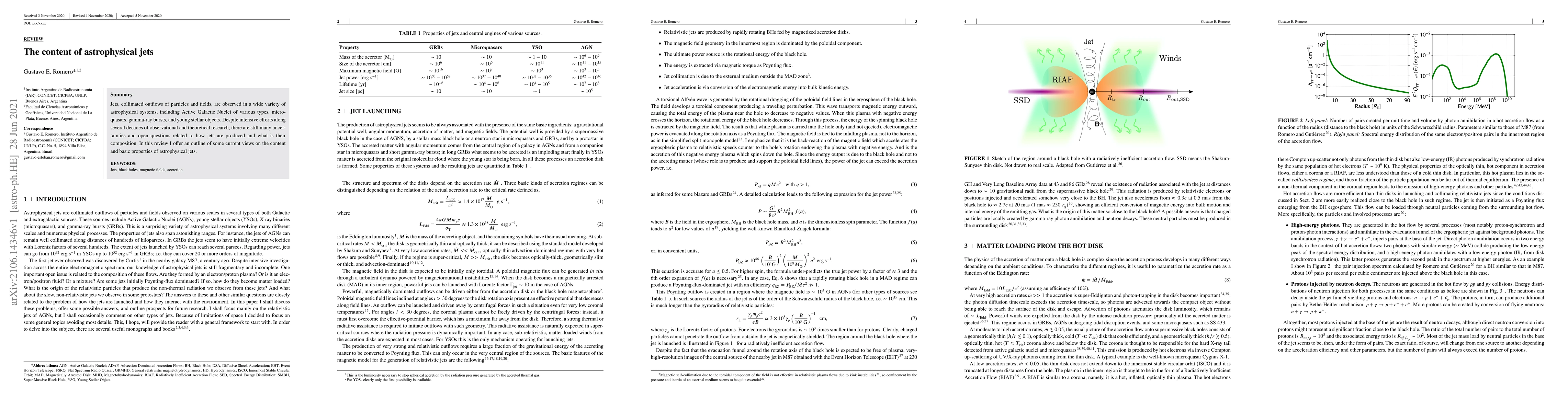 This paper reviews current understandings of the composition and properties of astrophysical jets, which are observed in diverse systems like Active Galactic Nuclei and young stellar objects, highlighting ongoing uncertainties in their formation and content.