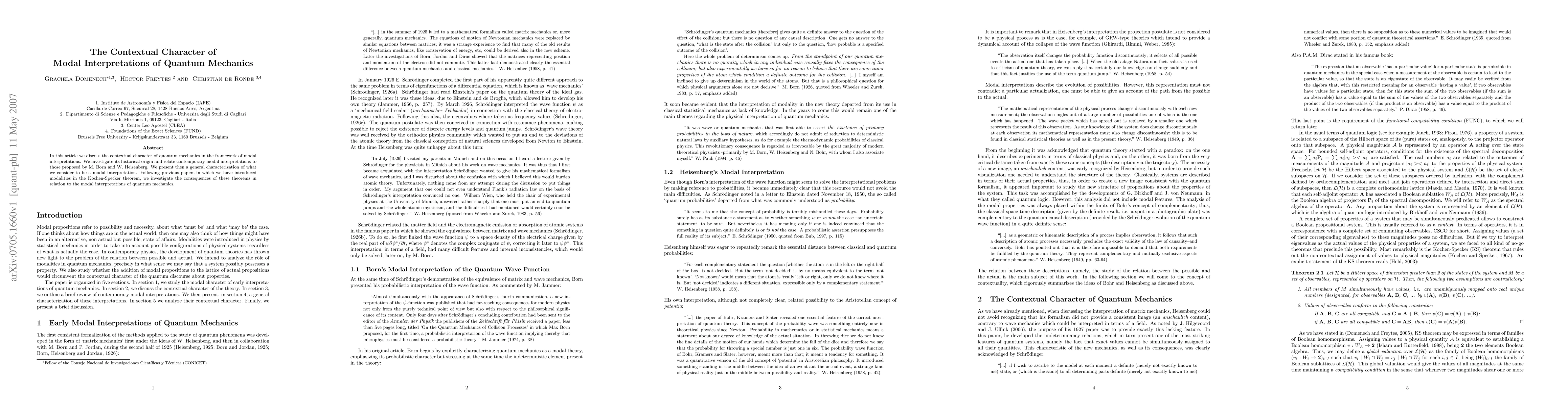 This paper explores the contextual nature of modal interpretations in quantum mechanics, tracing their historical roots to M. Born and W. Heisenberg, and defining a general framework for these interpretations while examining their implications in light of the Kochen-Specker theorem.