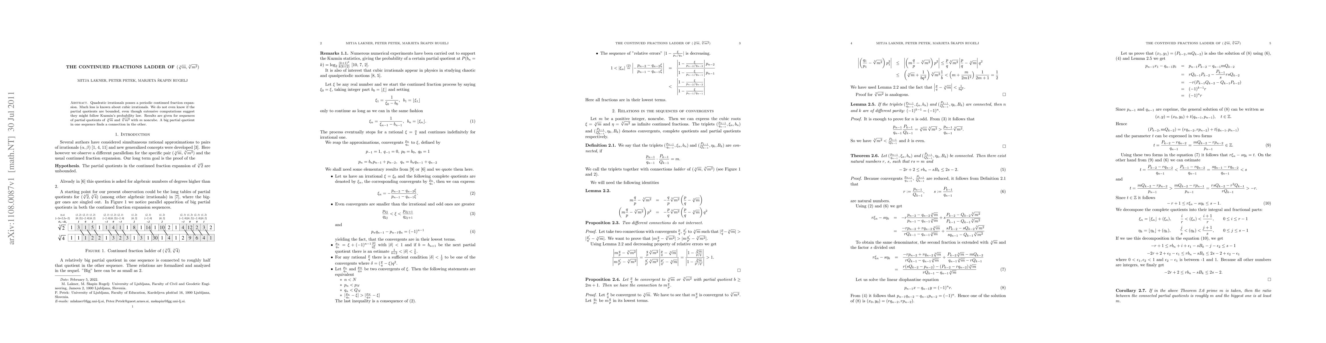 Quadratic irrationals posses a periodic continued fraction expansion. Much less is known about cubic irrationals. We do not even know if the partial quotients are bounded, even though extensive computations suggest they might follow Kuzmin's probability law. Results are given for sequences of partial quotients of $\sqrt[3]{m}$ and $\sqrt[3]{m^2}$ with $m$ noncube. A big partial quotient in one sequence finds a connection in the other.