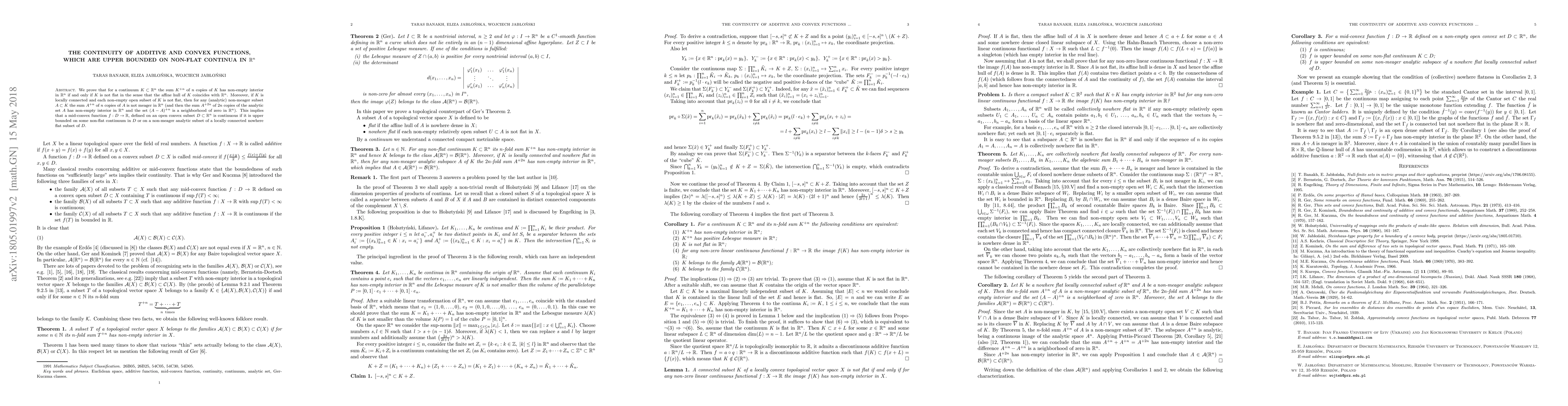 We prove that for a continuum $K\subset \mathbb R^n$ the sum $K^{+n}$ of $n$ copies of $K$ has non-empty interior in $\mathbb R^n$ if and only if $K$ is not flat in the sense that the affine hull of $K$ coincides with $\mathbb R^n$. Moreover, if $K$ is locally connected and each non-empty open subset of $K$ in not flat, then for any (analytic) non-meager subset $A\subset K$ the sum $A^{+n}$ of $n$ copies of $A$ is not meager in $\mathbb R^n$ (and then the sum $A^{+2n}$ of $2n$ copies of the analytic set $A$ has non-empty interior in $\mathbb R^n$ and the set $(A-A)^{+n}$ is a neighborhood of zero in $\mathbb R^n$). This implies that a mid-convex function $f:D\to\mathbb R$, defined on an open convex subset $D\subset\mathbb R^n$ is continuous if it is upper bounded on some non-flat continuum in $D$ or on a non-meager analytic subset of a locally connected nowhere flat subset of $D$.