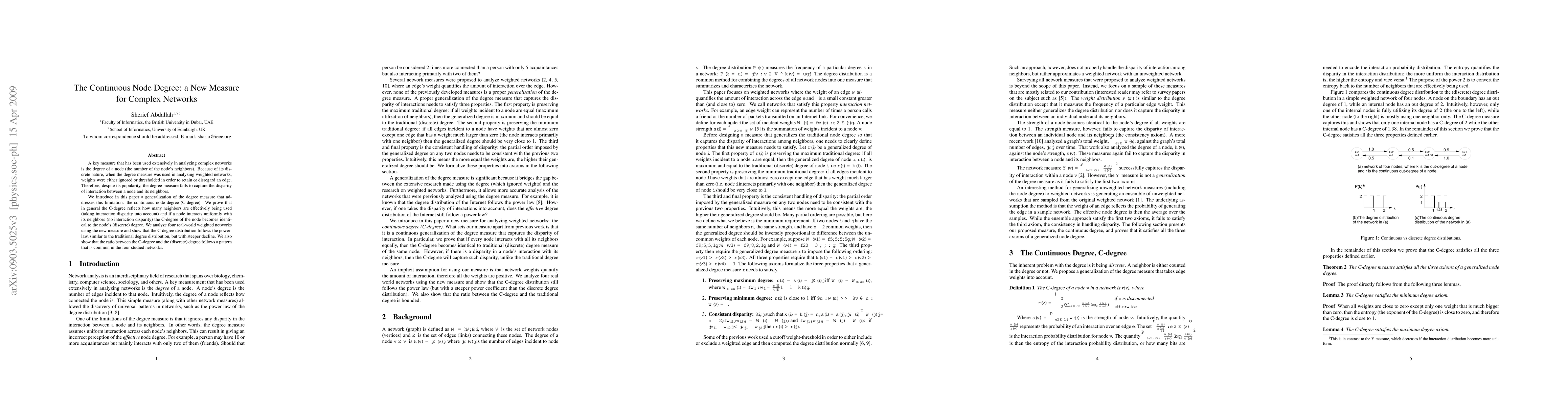Researchers introduce a new measure called continuous node degree to better capture interaction disparities in complex networks, showing it follows power-law distributions similar to traditional degree measures but with steeper decline rates.