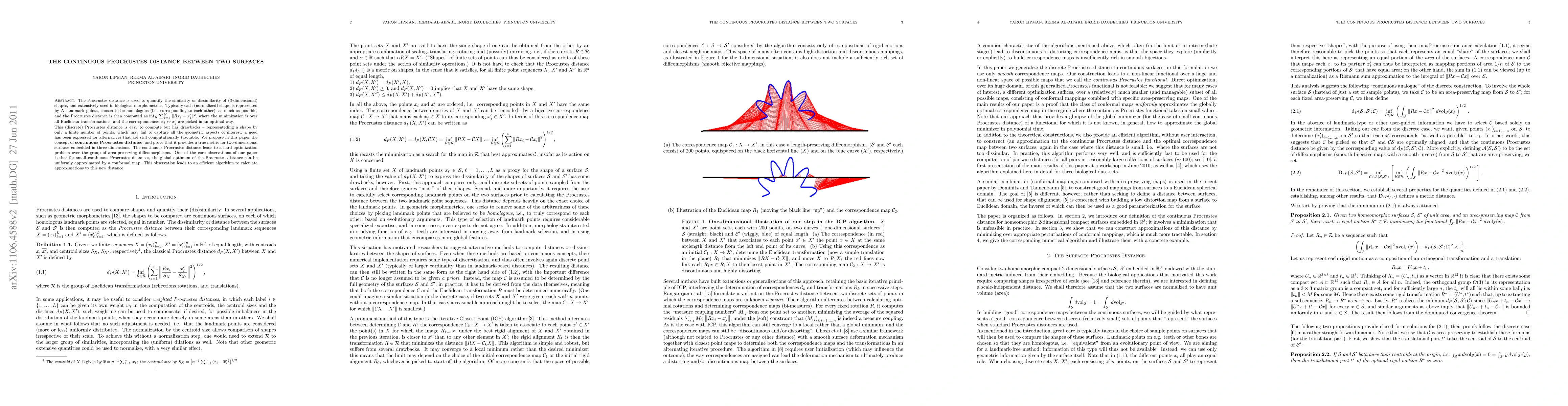 This paper introduces the continuous Procrustes distance to quantify the similarity between two-dimensional surfaces in three-dimensional space, addressing limitations of the discrete method. It provides an efficient algorithm for approximating the distance by leveraging conformal maps for small distances.