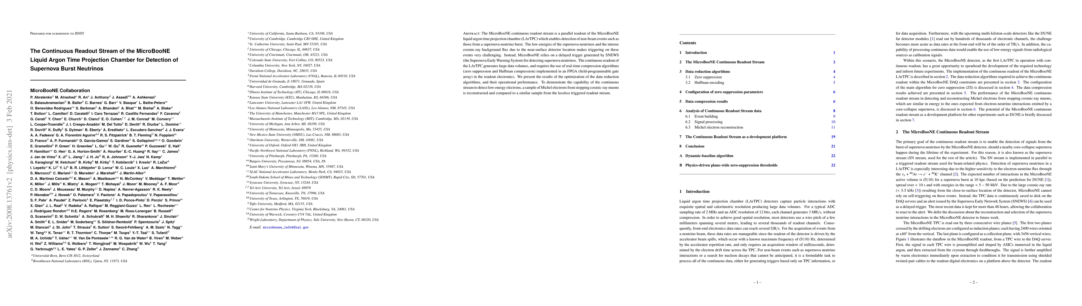 The MicroBooNE LArTPC's continuous readout stream enables detection of supernova neutrino bursts despite low energies and cosmic-ray interference, using delayed triggers from SNEWS and real-time compression algorithms in FPGAs. The optimization of these data reduction techniques is demonstrated through the comparison of reconstructed Michel electrons from cosmic-ray muons.