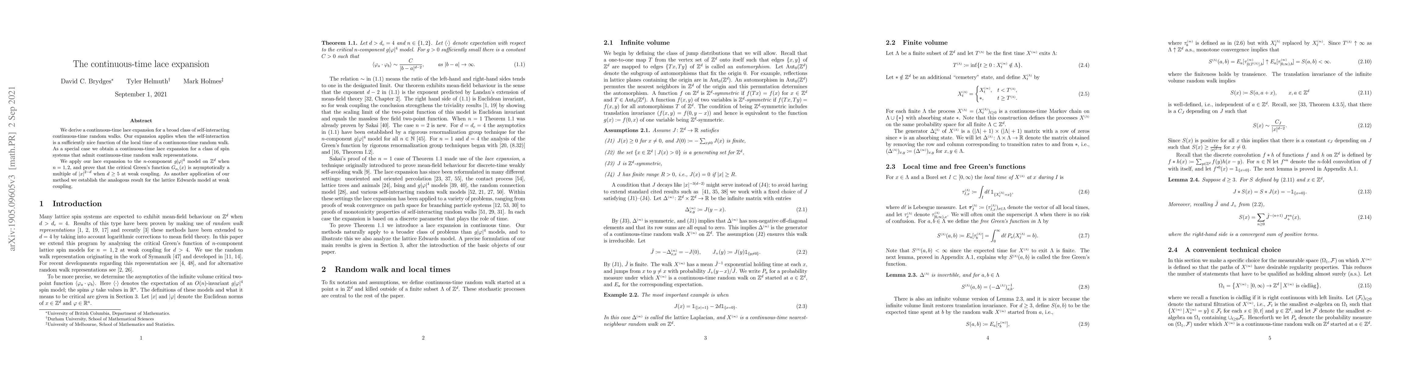 We derive a continuous-time lace expansion for a broad class of self-interacting continuous-time random walks. Our expansion applies when the self-interaction is a sufficiently nice function of the local time of a continuous-time random walk. As a special case we obtain a continuous-time lace expansion for a class of spin systems that admit continuous-time random walk representations. We apply our lace expansion to the $n$-component $g|\varphi|^4$ model on $\mathbb{Z}^{d}$ when $n=1,2$, and prove that the critical Green's function $G_{\nu_{c}}(x)$ is asymptotically a multiple of $|x|^{2-d}$ when $d\geq 5$ at weak coupling. As another application of our method we establish the analogous result for the lattice Edwards model at weak coupling.