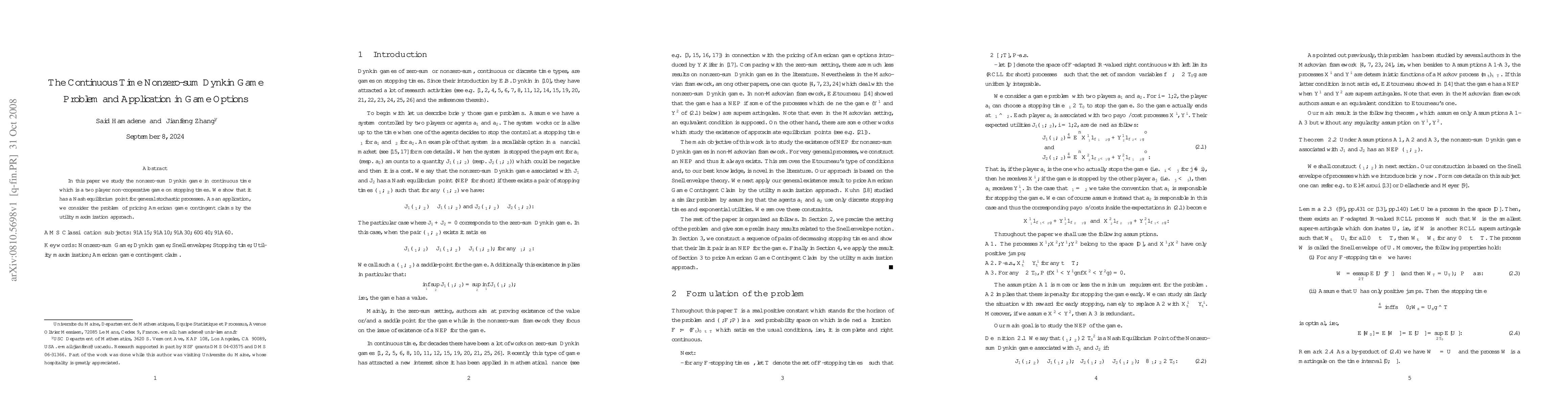 This paper explores the continuous time nonzero-sum Dynkin game, proving the existence of a Nash equilibrium for general stochastic processes. It applies this theory to price American game contingent claims using utility maximization.