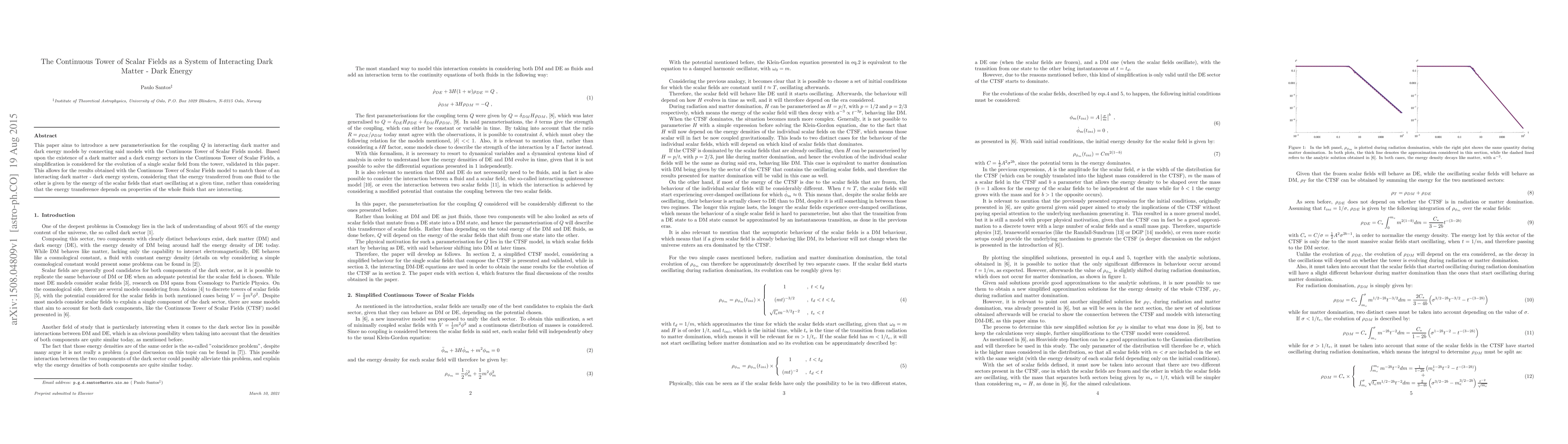This paper aims to introduce a new parameterisation for the coupling Q in interacting dark matter and dark energy models by connecting said models with the Continuous Tower of Scalar Fields model. Based upon the existence of a dark matter and a dark energy sectors in the Continuous Tower of Scalar Fields, a simplification is considered for the evolution of a single scalar field from the tower, validated in this paper. This allows for the results obtained with the Continuous Tower of Scalar Fields model to match those of an interacting dark matter - dark energy system, considering that the energy transferred from one fluid to the other is given by the energy of the scalar fields that start oscillating at a given time, rather than considering that the energy transference depends on properties of the whole fluids that are interacting.