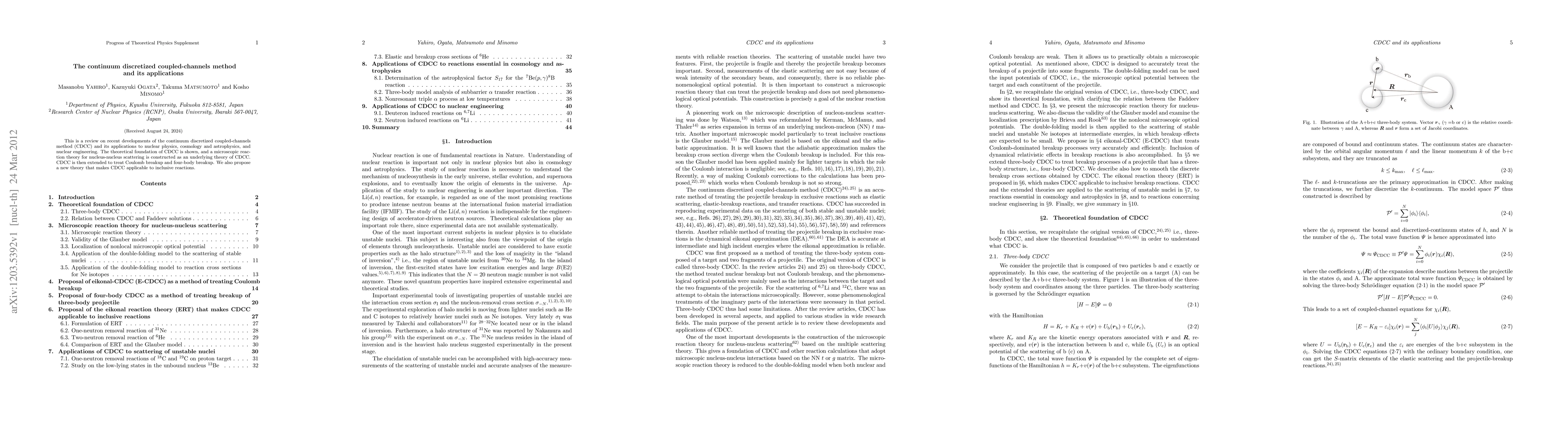 Summary: This paper reviews advancements in the continuum discretized coupled-channels method (CDCC), detailing its theoretical foundation and applications in nuclear physics, cosmology, astrophysics, and nuclear engineering. It extends CDCC to handle Coulomb and four-body breakup, and proposes a new theory for inclusive reactions.