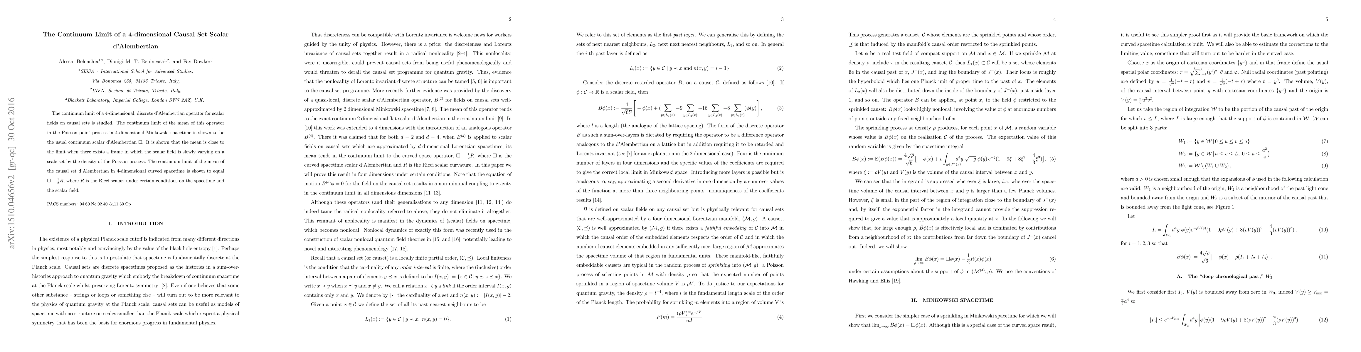 This paper investigates the continuum limit of a discrete d'Alembertian operator on causal sets, demonstrating that it converges to the standard scalar d'Alembertian operator $\Box$ in 4-dimensional Minkowski spacetime when the scalar field varies slowly. In curved spacetime, the limit is shown to be $\Box - \frac{1}{2}R$, where $R$ is the Ricci scalar, under specific conditions.