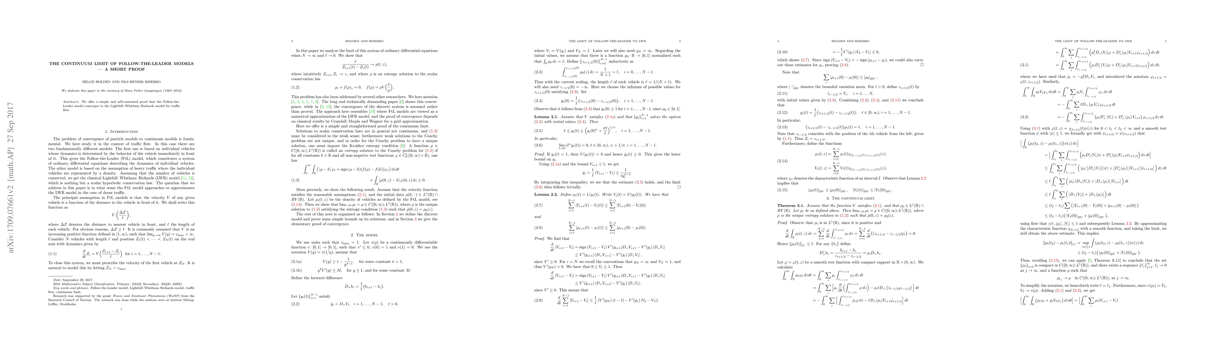Summary: This paper provides a concise proof demonstrating the convergence of the Follow-the-Leader model to the Lighthill-Whitham-Richards model in traffic flow scenarios, offering a straightforward approach to understanding the continuum limit.