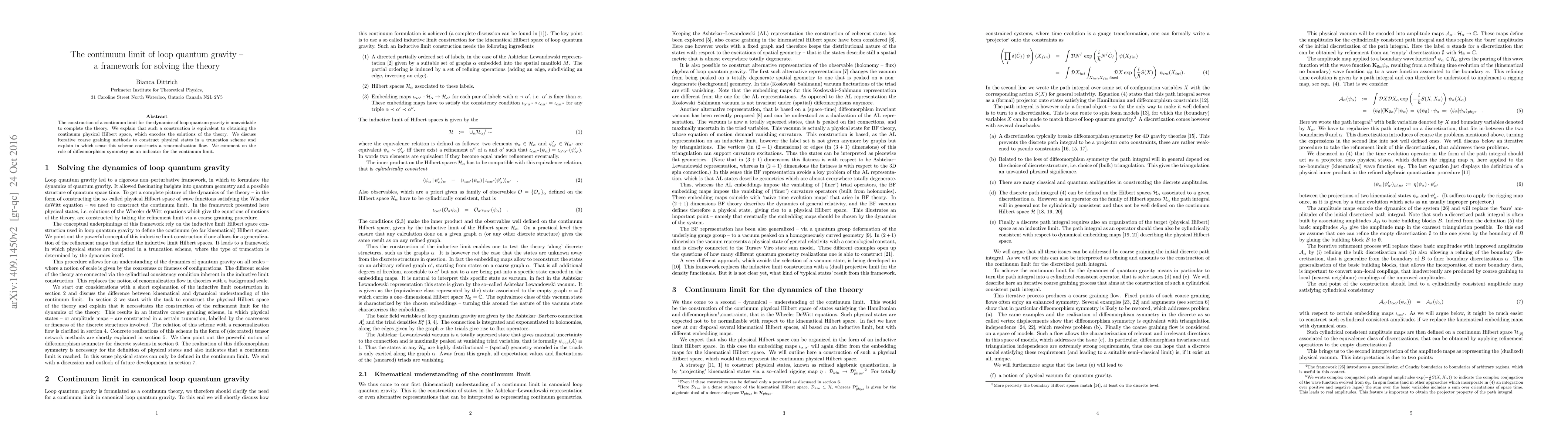 The paper proposes iterative coarse graining methods to build the continuum physical Hilbert space in loop quantum gravity, essential for completing the theory, and discusses the role of diffeomorphism symmetry in indicating the continuum limit. The scheme presented serves as a renormalization flow.