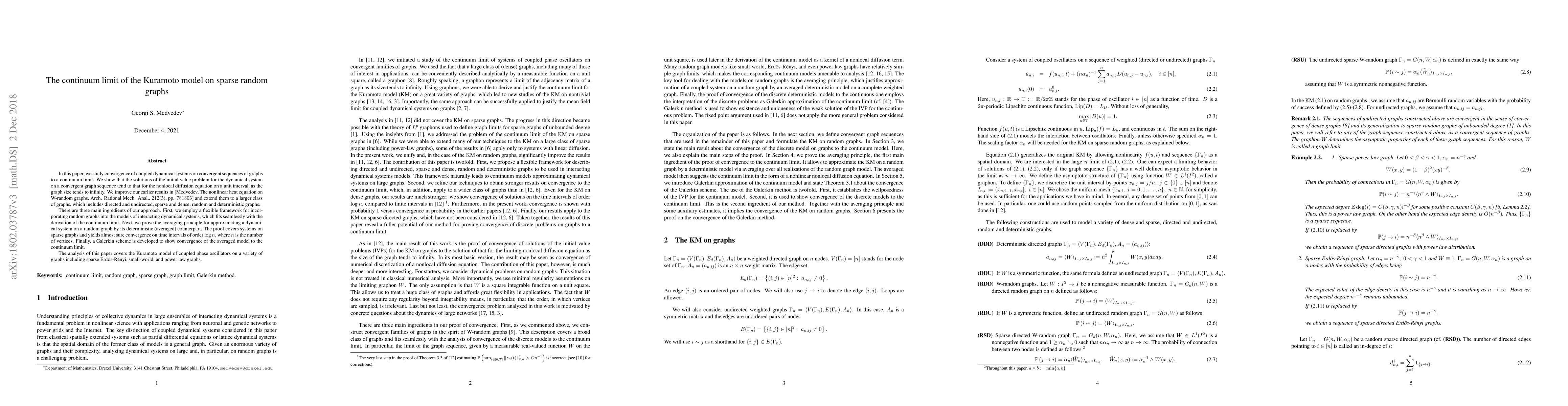 In this paper, we study convergence of coupled dynamical systems on convergent sequences of graphs to a continuum limit. We show that the solutions of the initial value problem for the dynamical system on a convergent graph sequence tend to that for the nonlocal diffusion equation on a unit interval, as the graph size tends to infinity. We improve our earlier results in [Arch. Ration. Mech. Anal., 21 (2014), pp. 781--803] and extend them to a larger class of graphs, which includes directed and undirected, sparse and dense, random and deterministic graphs. There are three main ingredients of our approach. First, we employ a flexible framework for incorporating random graphs into the models of interacting dynamical systems, which fits seamlessly with the derivation of the continuum limit. Next, we prove the averaging principle for approximating a dynamical system on a random graph by its deterministic (averaged) counterpart. The proof covers systems on sparse graphs and yields almost sure convergence on time intervals of order $\log n,$ where $n$ is the number of vertices. Finally, a Galerkin scheme is developed to show convergence of the averaged model to the continuum limit. The analysis of this paper covers the Kuramoto model of coupled phase oscillators on a variety of graphs including sparse Erd\H{o}s-R{\' e}nyi, small-world, and power law graphs.