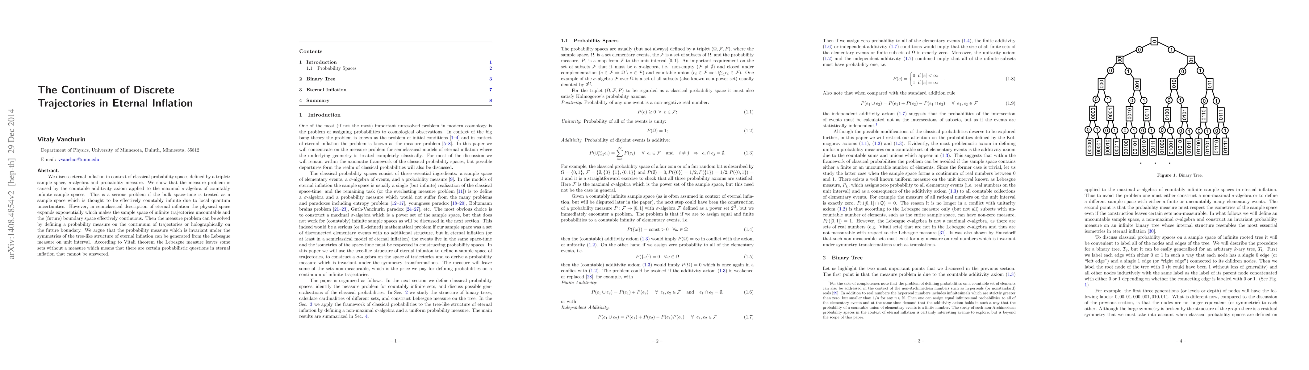 We discuss eternal inflation in context of classical probability spaces defined by a triplet: sample space, $\sigma$-algebra and probability measure. We show that the measure problem is caused by the countable additivity axiom applied to the maximal $\sigma$-algebra of countably infinite sample spaces. This is a serious problem if the bulk space-time is treated as a sample space which is thought to be effectively countably infinite due to local quantum uncertainties. However, in semiclassical description of eternal inflation the physical space expands exponentially which makes the sample space of infinite trajectories uncountable and the (future) boundary space effectively continuous. Then the measure problem can be solved by defining a probability measure on the continuum of trajectories or holographically on the future boundary. We argue that the probability measure which is invariant under the symmetries of the tree-like structure of eternal inflation can be generated from the Lebesgue measure on unit interval. According to Vitali theorem the Lebesgue measure leaves some sets without a measure which means that there are certain probabilistic questions in eternal inflation that cannot be answered.
