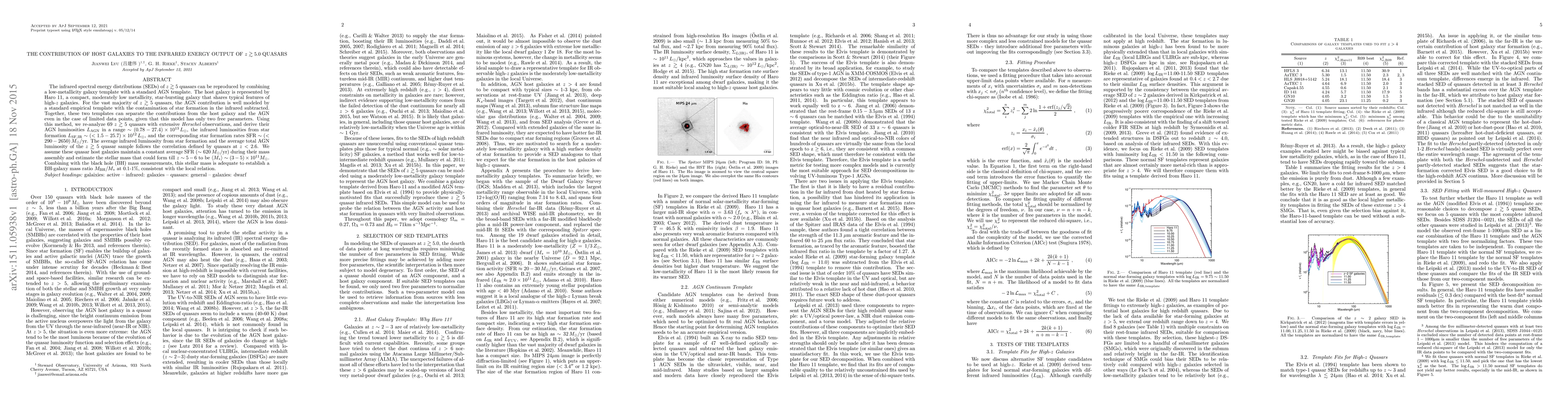 Researchers used a galaxy template to separate the infrared energy output of $z gtrsim 5$ quasars into host galaxy and AGN contributions, finding average star formation rates and stellar masses that match local relations.