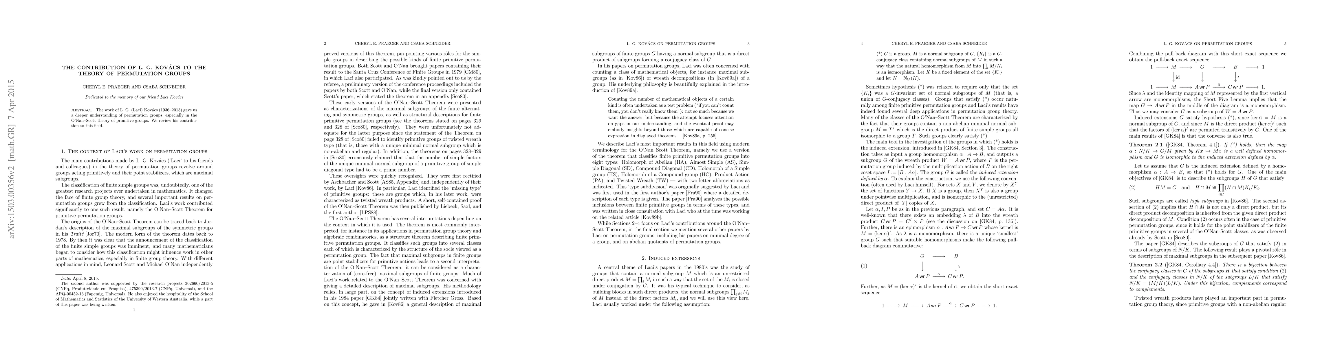 Summary: This paper reviews L. G. Kovács' significant contributions to the theory of permutation groups, particularly enhancing the understanding of primitive groups through the O'Nan-Scott classification scheme.