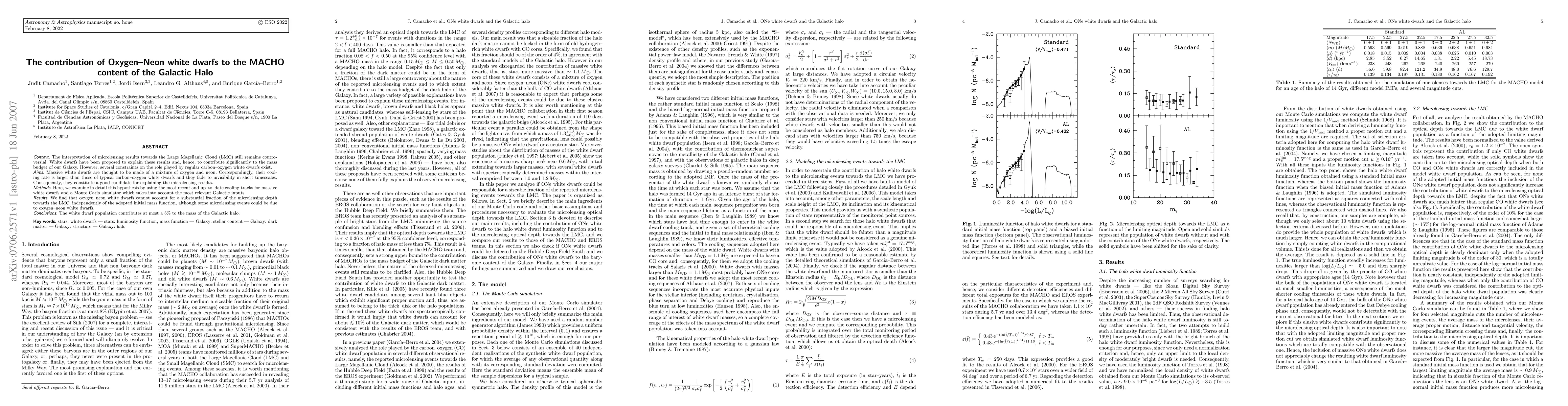 The study examines the contribution of Oxygen-Neon white dwarfs to the MACHO content of the Galactic Halo using updated cooling tracks and a Monte Carlo simulator incorporating Galactic inputs.