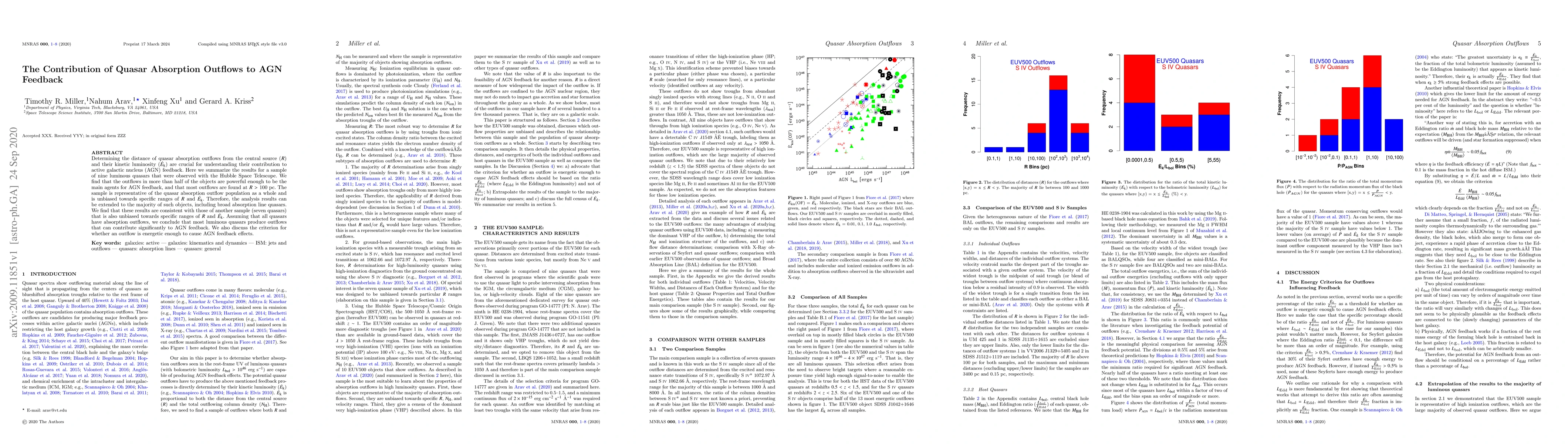 This research utilized Hubble Space Telescope observations of a sample of nine luminous quasars to analyze quasar absorption outflows, focusing on their distances (R) from the central source and kinetic luminosity to understand their contribution to AGN feedback.