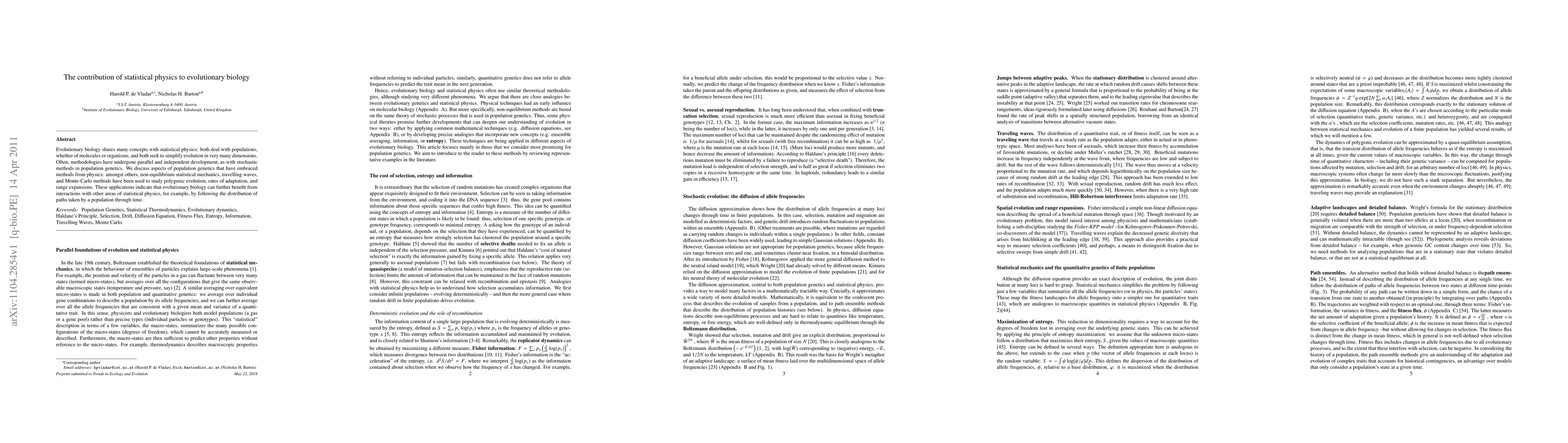 This paper explores the intersection between evolutionary biology and statistical physics, highlighting how methodologies from physics, such as non-equilibrium statistical mechanics and Monte-Carlo methods, have been applied to study population genetics, adaptation rates, and range expansions. It suggests that further collaboration between these fields could yield deeper insights into evolutionary processes.