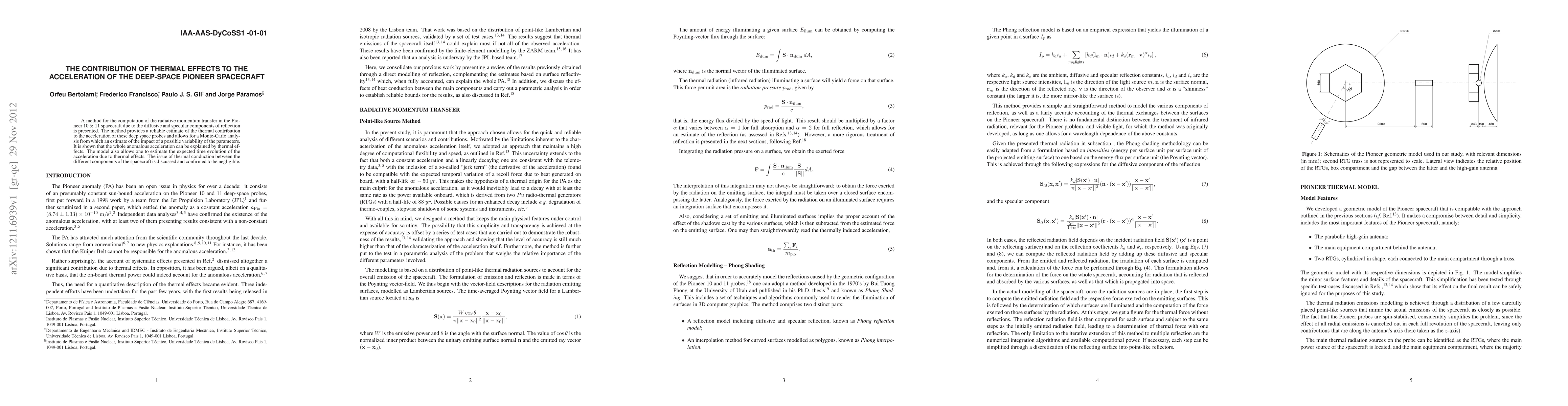 This research explains the Pioneer spacecraft's anomalous acceleration using thermal effects, presenting a method to estimate radiative momentum transfer. The study concludes that thermal re-radiation from the spacecraft's RTG and equipment fully accounts for the observed acceleration, with thermal conduction deemed negligible.