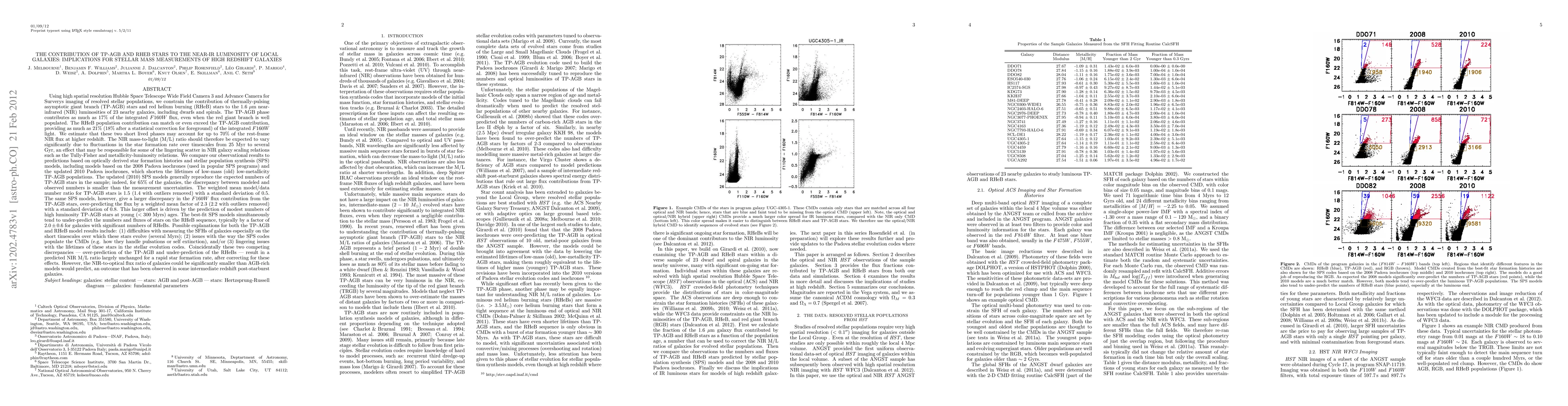 This study uses HST imaging to analyze the near-IR luminosity contributions of TP-AGB and RHeB stars in 23 nearby galaxies, finding that these stars can account for up to 21% of the integrated F160W flux. It highlights significant discrepancies between observed and predicted stellar population models, particularly in the flux contributions of TP-AGB stars and the numbers of RHeB stars.