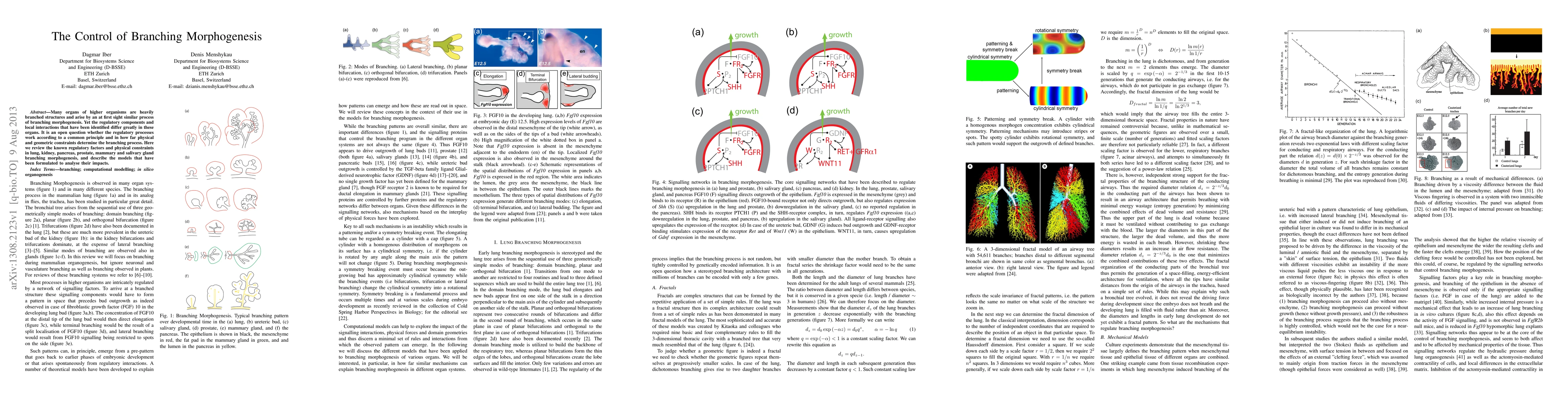 Many organs of higher organisms are heavily branched structures and arise by an at first sight similar process of branching morphogenesis. Yet the regulatory components and local interactions that have been identified differ greatly in these organs. It is an open question whether the regulatory processes work according to a common principle and in how far physical and geometric constraints determine the branching process. Here we review the known regulatory factors and physical constraints in lung, kidney, pancreas, prostate, mammary and salivary gland branching morphogenesis, and describe the models that have been formulated to analyse their impacts.
