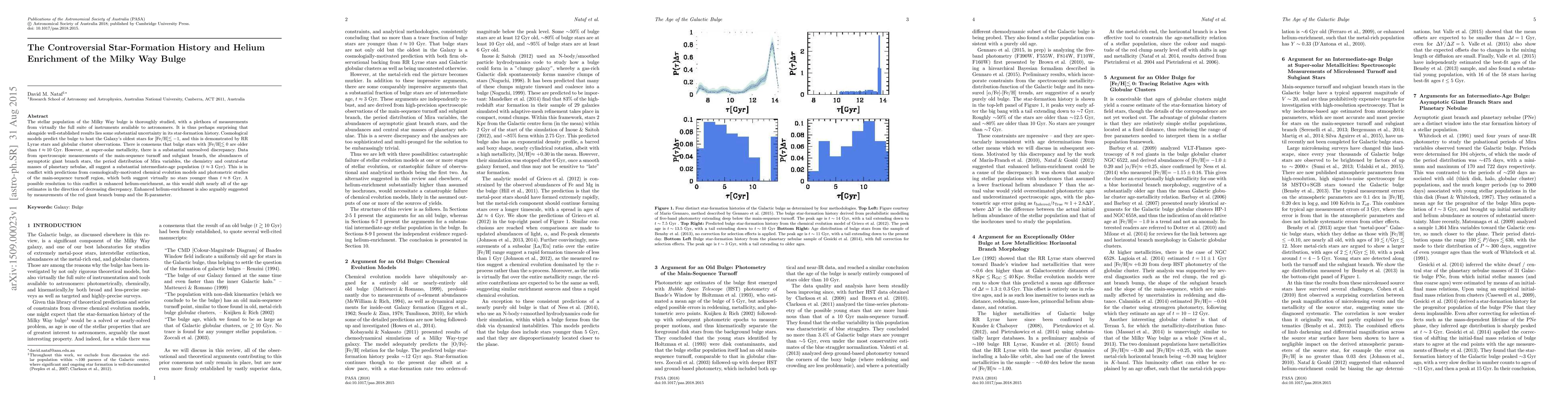This paper explores the star-formation history of the Milky Way bulge, revealing a substantial uncertainty despite extensive measurements. It finds a conflict between spectroscopic data indicating an intermediate-age population and models predicting an older age, suggesting enhanced helium-enrichment as a potential resolution.