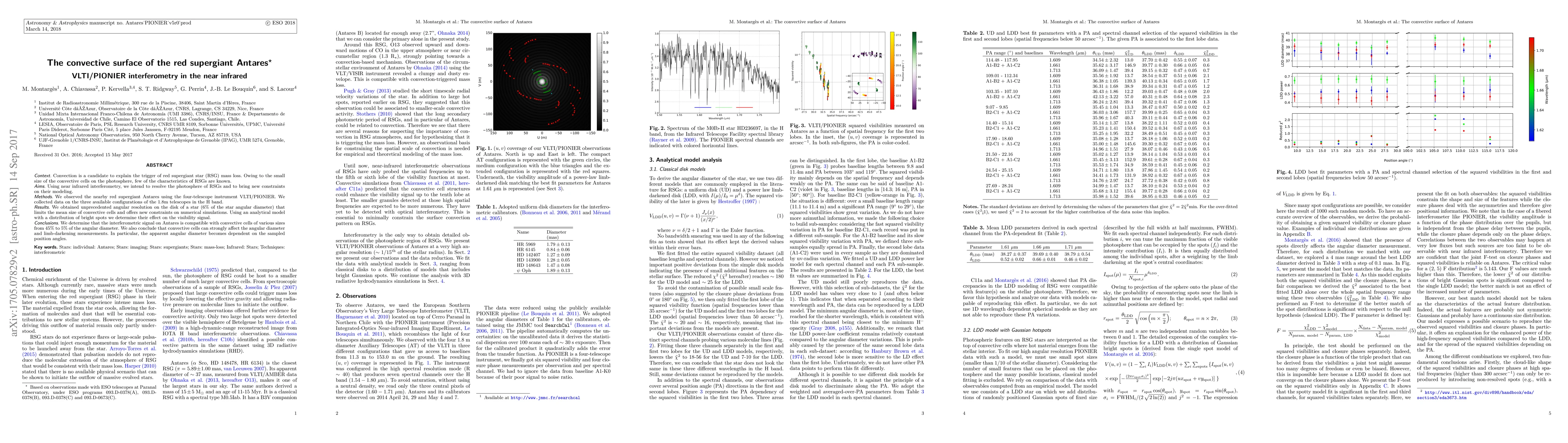 This study uses VLTI/PIONIER interferometry to resolve the convective surface of the red supergiant Antares in the near infrared, achieving unprecedented angular resolution. The findings suggest that the interferometric signal supports the presence of convective cells ranging from 45% to 5% of the star's angular diameter, significantly impacting angular diameter and limb-darkening measurements.