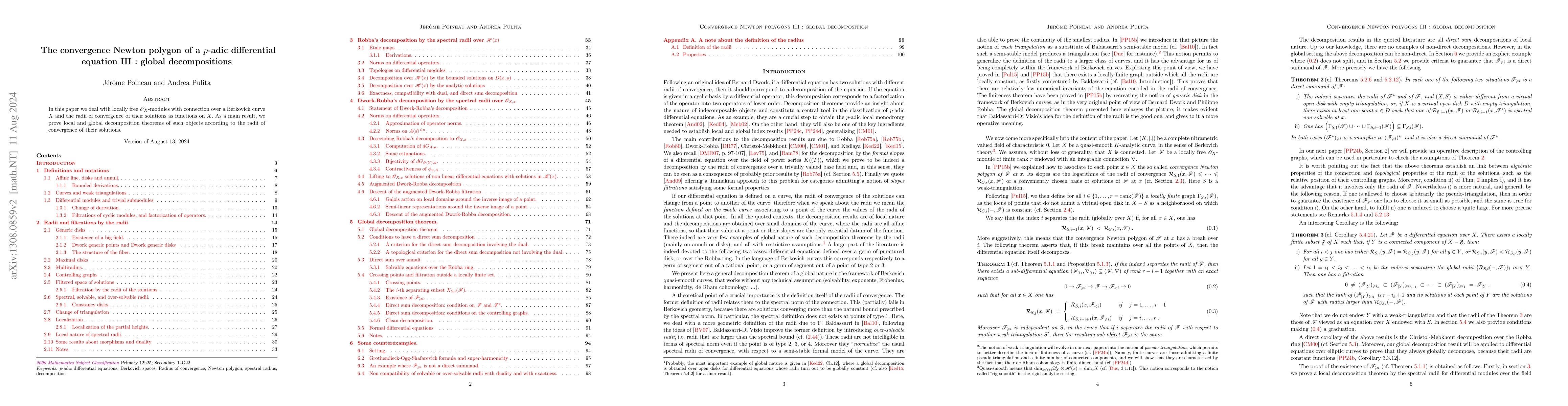 Researchers develop a new framework for analyzing $p$-adic differential equations over Berkovich curves, providing global decomposition theorems, controlling graph bounds, and applications to elliptic curves classification.