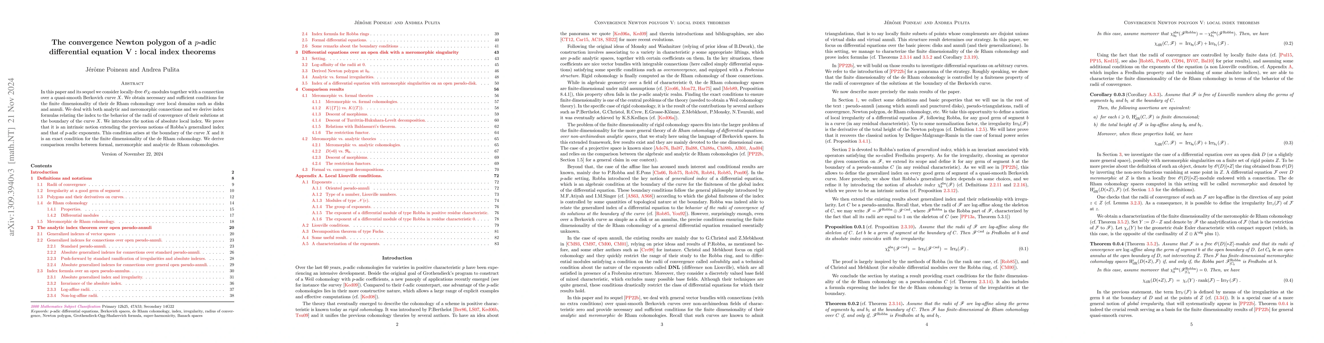 Let $X$ be a quasi-smooth Berkovich curve over a field of characteristic $0$ and let $\mathscr{F}$ be a locally free $\mathscr{O}_{X}$-module with connection. In this paper, we prove local and global criteria to ensure the finite-dimensionality of the de Rham cohomology of $\mathscr{F}$. Moreover, we state a global Grothendieck-Ogg-Shafarevich formula that relates the index of $\mathscr{F}$ in the sense of de Rham cohomology to the Euler characteristic of $X$ and expresses the difference as a sum of irregularities. We also derive super-harmonicity results for the partial heights of the convergence Newton polygon of $\mathscr{F}$.
