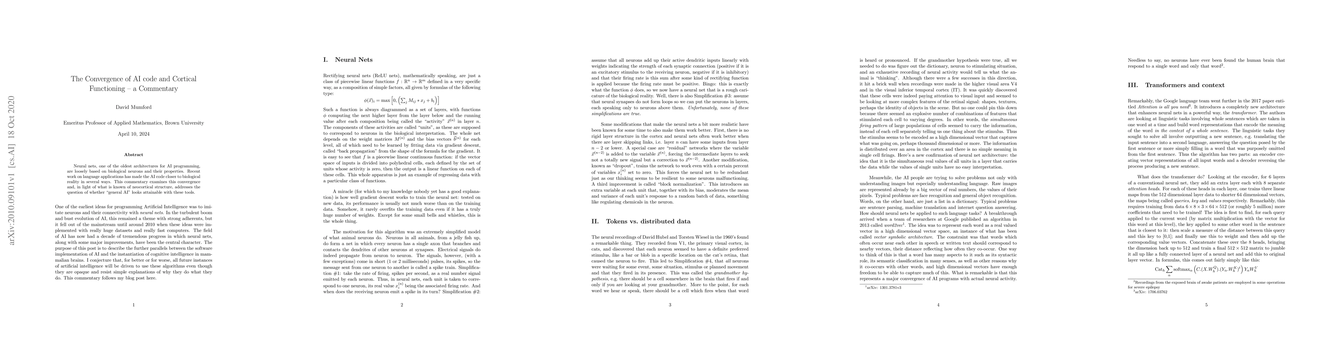 Neural nets, one of the oldest architectures for AI programming, are loosely based on biological neurons and their properties. Recent work on language applications has made the AI code closer to biological reality in several ways. This commentary examines this convergence and, in light of what is known of neocortical structure, addresses the question of whether ``general AI'' looks attainable with these tools.