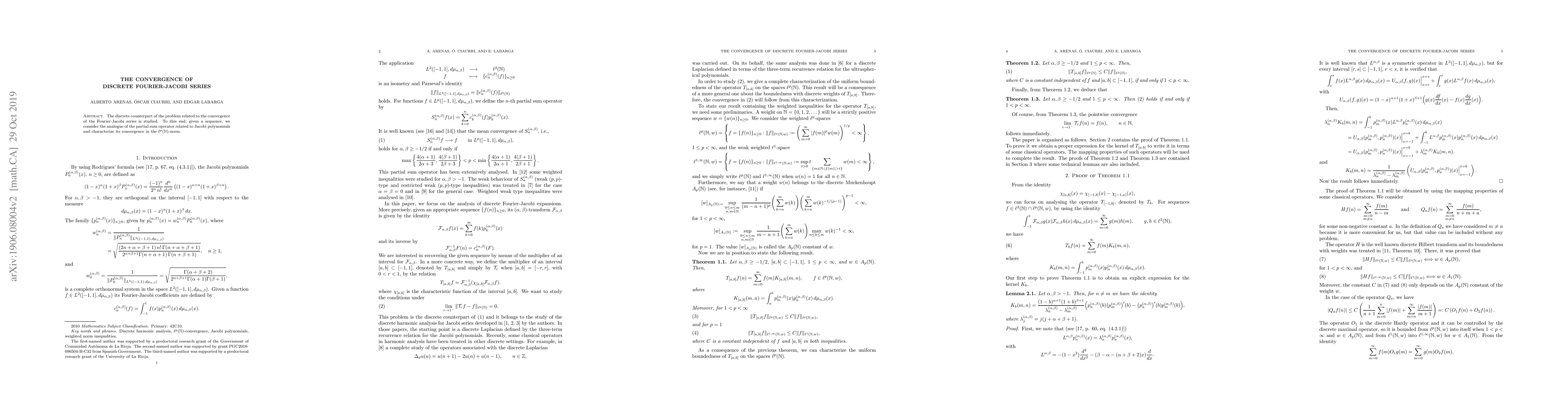 This paper investigates the convergence of the discrete Fourier-Jacobi series, constructing a partial sum operator based on Jacobi polynomials and characterizing its convergence in $\ell^p(\mathbb{N})$-norm spaces.