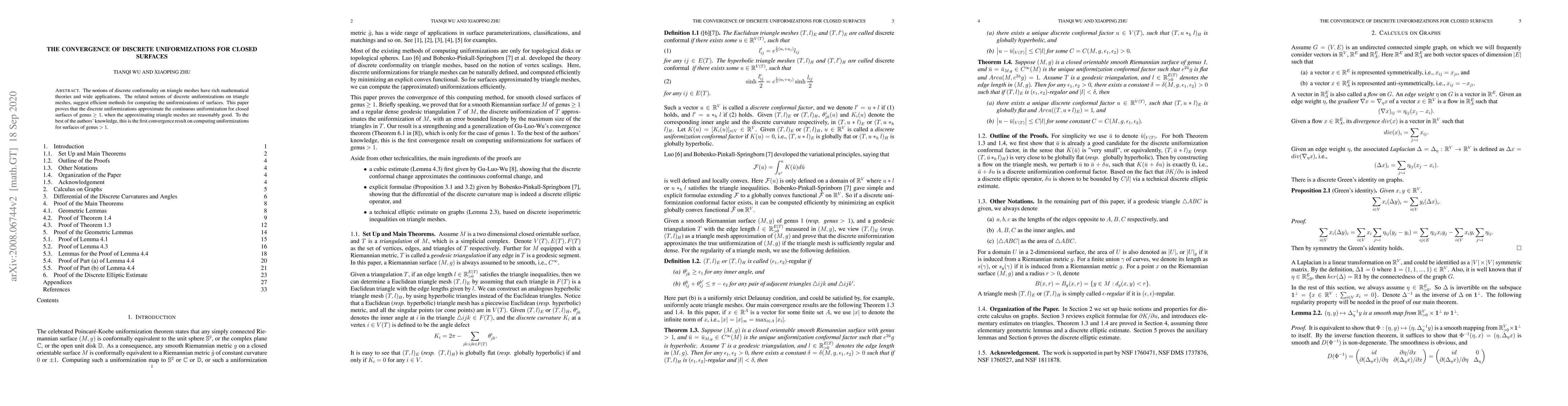 This paper demonstrates that discrete uniformizations on triangle meshes converge to continuous uniformizations for closed surfaces of genus ≥1, providing the first convergence result for surfaces of genus greater than 1. This convergence is shown when the triangle meshes are sufficiently good.