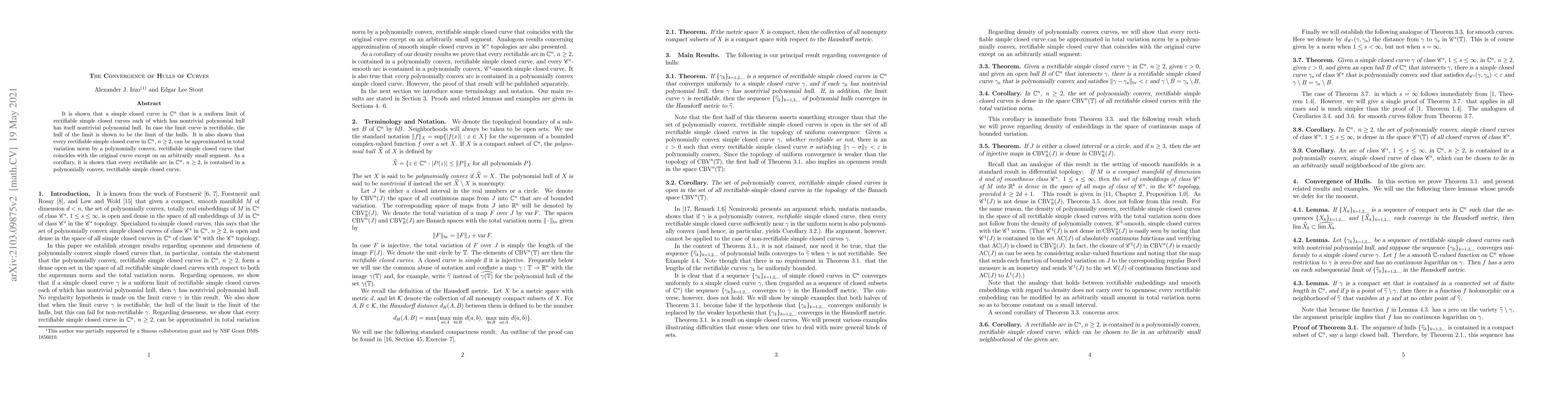This paper demonstrates that a rectifiable simple closed curve in $\mathbb C^n$ converging to a limit curve retains a nontrivial polynomial hull, and that the hull of the limit curve equals the limit of the hulls if the limit is rectifiable. It also proves that every rectifiable simple closed curve in $\mathbb C^n$ can be approximated by a polynomially convex curve, implying that any rectifiable arc in $\mathbb C^n$ is contained within a polynomially convex, rectifiable simple closed curve.