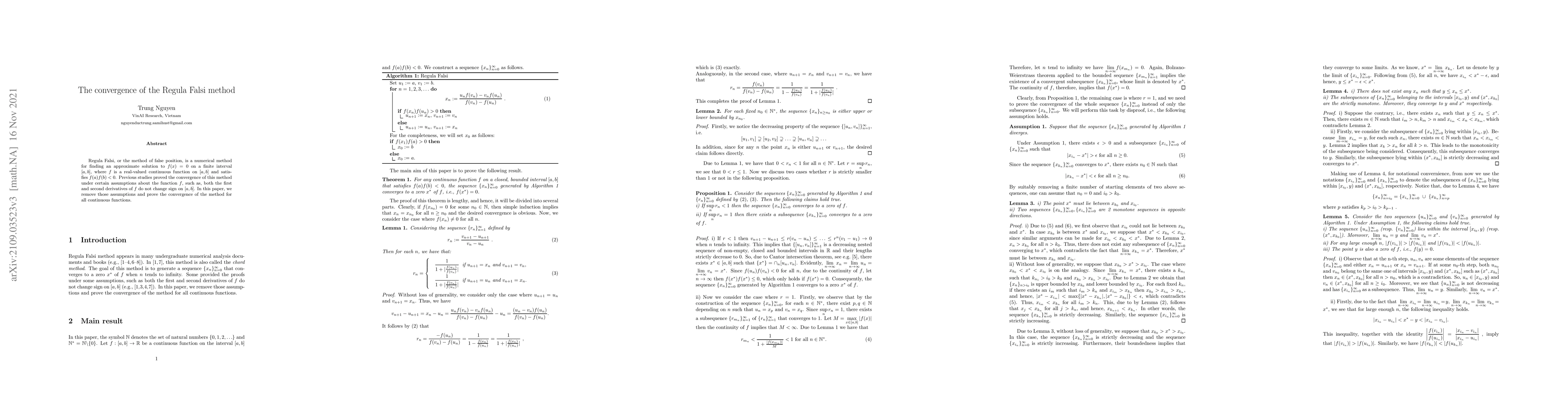 A new study proves the convergence of Regula Falsi method for finding roots of a function, without requiring assumptions about the function's derivatives.